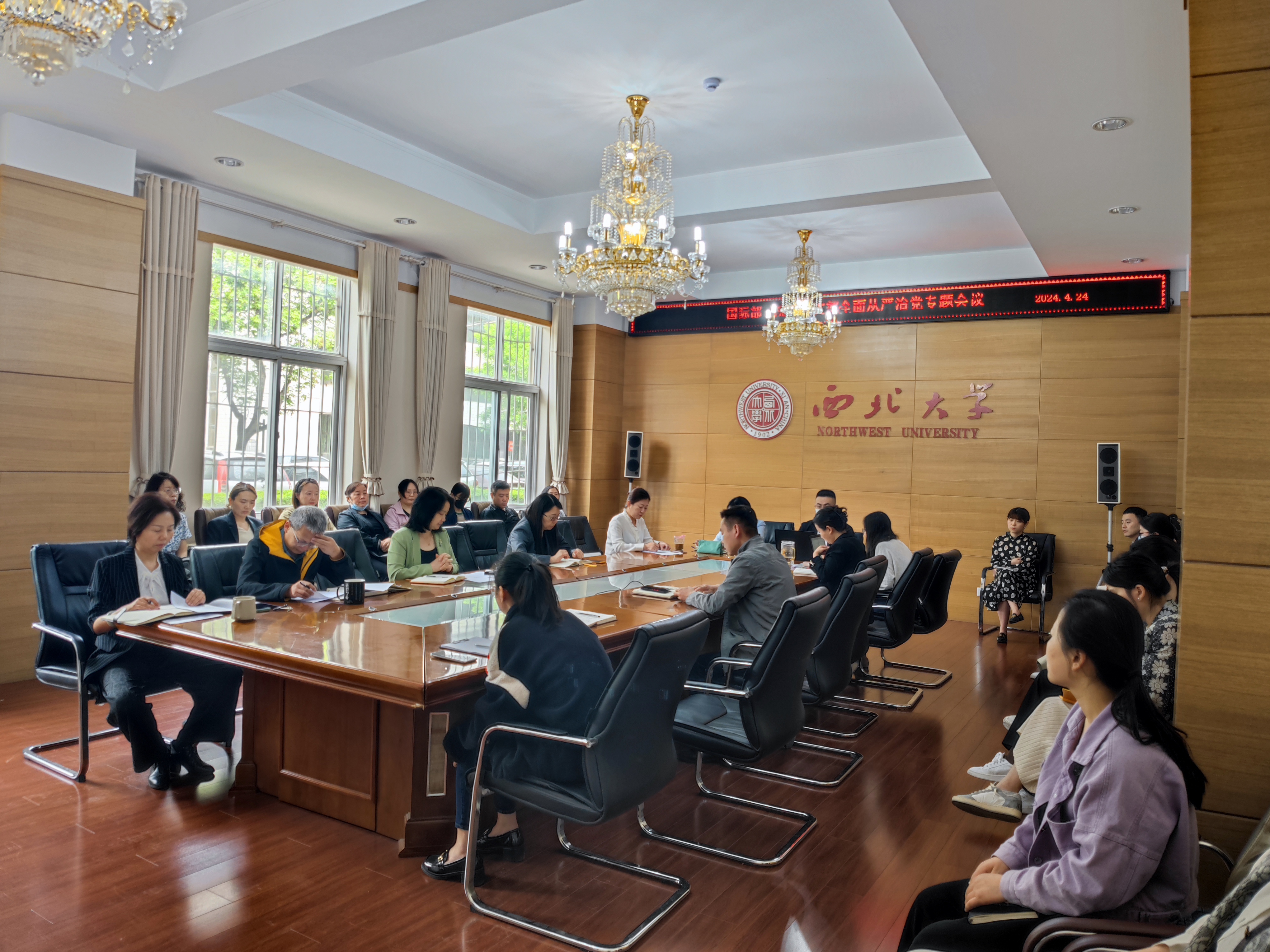 4月24日,56net亚洲必赢手机党支部在太白校区召开全面从严治党专题会议,部(院)全体教职工参会。会议由党支部书记任惠莲主持。会议集体学习了《中国共产党纪律处分条例》,传达了2024年全面从严治党责任书,安全稳定责任书,精神文明建设和宣传思想文化工作责任书,以及做好国际学生安全管理工作的通知等相关内容和精神,并就部(院)意识形态工作进行了专题讨论。任惠莲在总结讲话中强调了严肃党风和工作作风的重要...