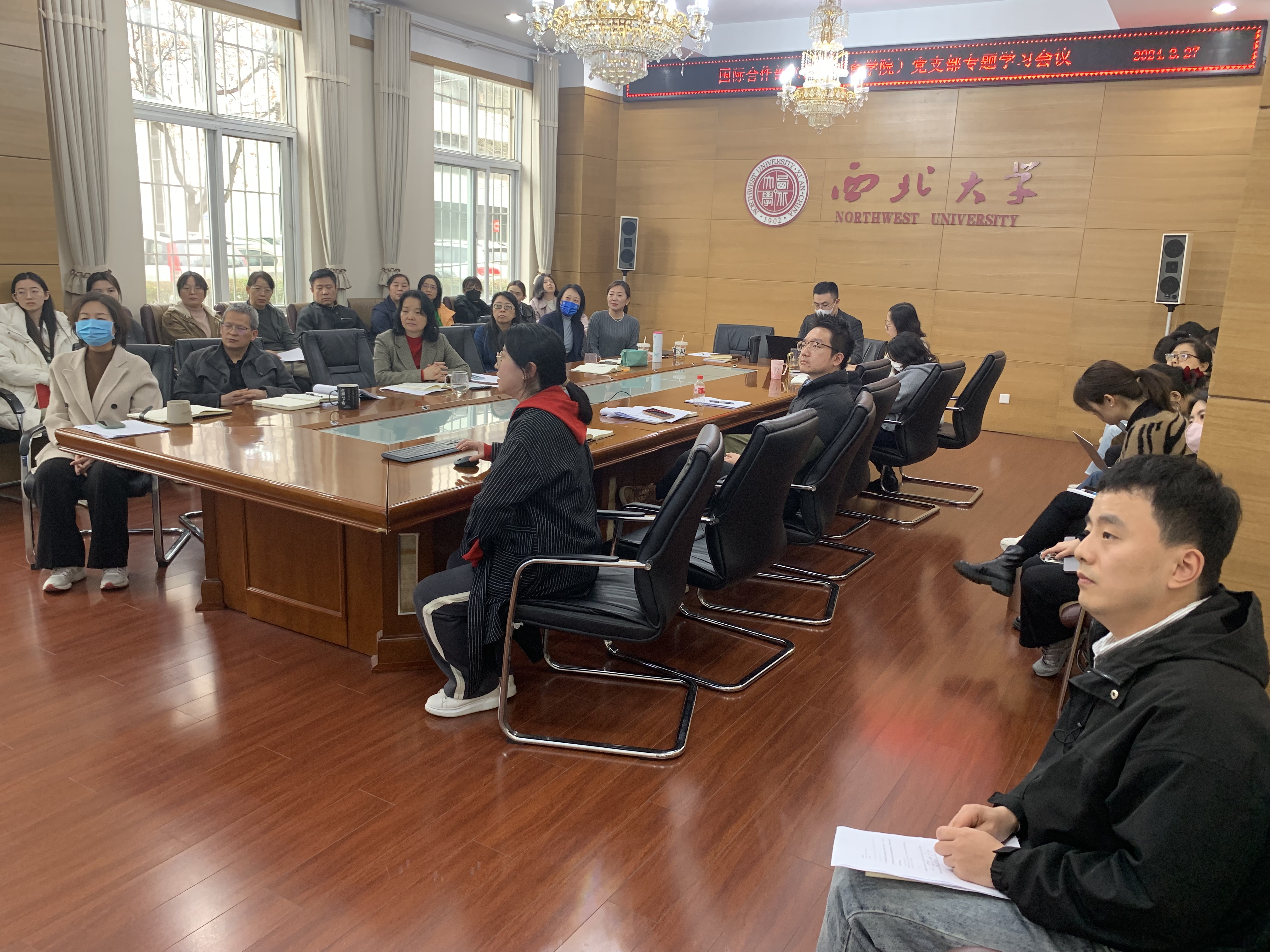 3月27日,56net亚洲必赢手机党支部在太白校区召开专题学习(扩大)会议,部(院)全体教职工参会。会议由党支部书记任惠莲主持。会上,党支部组织集体学习了《中共中央办公厅关于巩固拓展学习贯彻习近平新时代中国特色社会主义思想主题教育成果的意见》,传达了国务院总理李强在第十四届全国人民代表大会第二次会议上作的政府工作报告中有关对外交流合作的精神和学校深化干部作风能力提升工作动员部署会会议精神,并对...