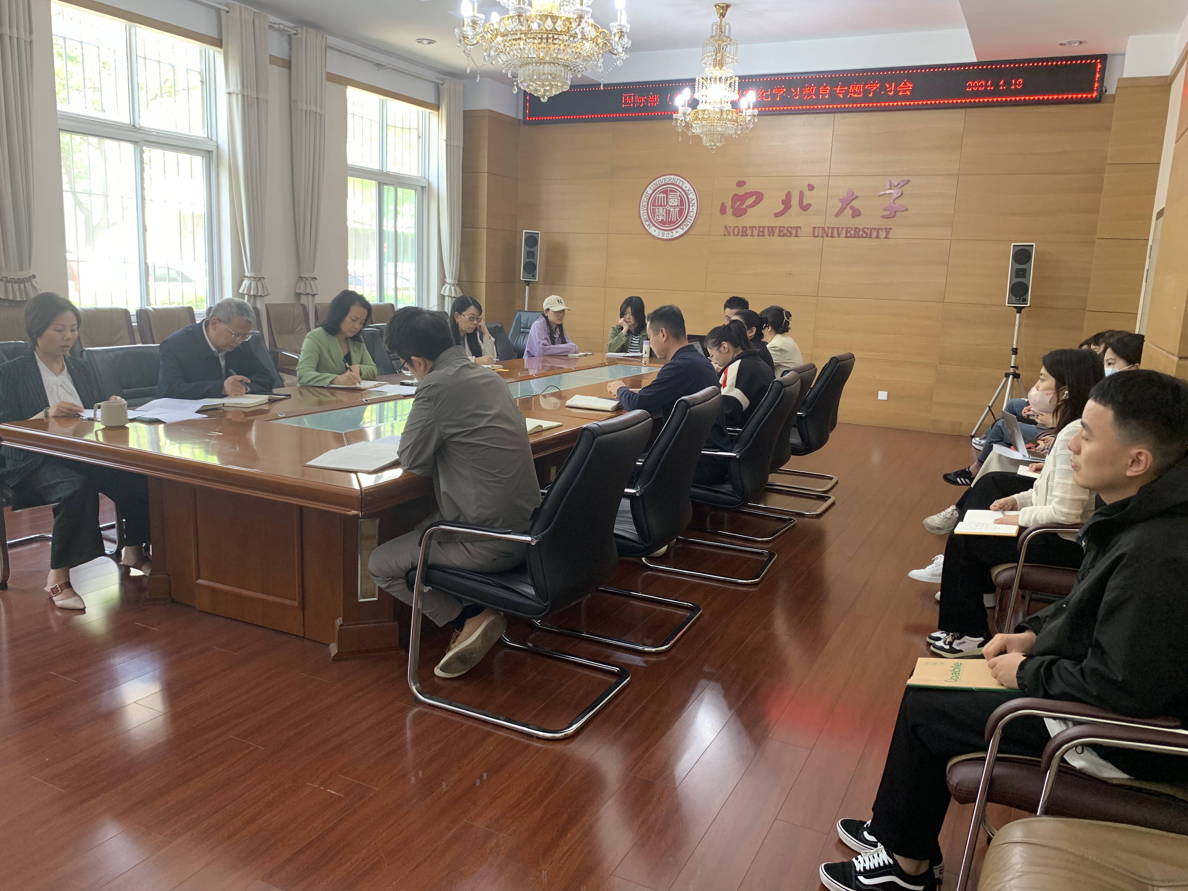 4月18日,56net亚洲必赢手机党支部在太白校区召开党纪学习教育专题会议,部(院)全体教职工参会。会议由党支部书记任惠莲主持。会议传达了学校党纪学习教育安排部署会、2024年全面从严治党工作会议精神和机关党委党纪学习教育部署会精神,并对部(院)作风能力提升工作进行了安排部署。会议还组织观看了《国家总体安全观10周年宣传片》,学习了保密安全相关案例。任惠莲在总结讲话中强调了开展党纪学习教育和维护国家...