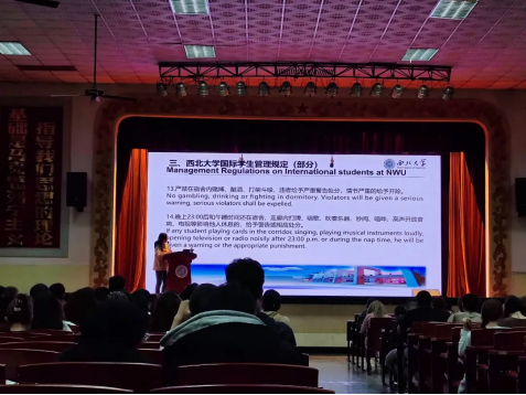 2023级新生入学教育环节,西安市公安局出入境管理局曹宇警官围绕涉外法律法规条文、签证办理、违纪违法案例等方面进行全面系统的诠释和强调,提醒务必遵纪守法,及时关注自己的签证有效期。王曼老师向大家解读了涉及国际学生管理的相关规定,薛珊老师从学业指导角度讲解了学分修习方法和规定、专业课程以及汉语等级的要求等。