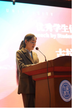 刘娟妮科长致辞中提醒全体新生要珍惜宝贵的出国留学机会,专注于专业和汉语学习,不断感受中国文化,遵守中国法律法规,尊重文化差异并不断加深了解中国文化,不要做违反法律和损害自身安全的事情。