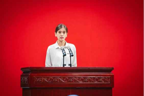 我是ALTYNAI,中文名字叫黄月,来自吉尔吉斯斯坦。作为2023级丝绸之路研究院中国史专业的博士研究生。我非常荣幸,能够站在这里代表54个国家600余名留学生发言,并与大家分享我的想法和感受。