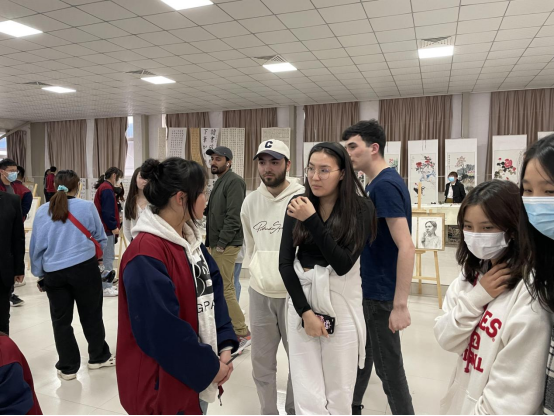 最后,国际学生一行赴武功县绿野高级中学开展中外师生文化交流联谊活动,本次活动受到武功县教育局的大力支持。绿野中学副校长贺海军致欢迎辞,希望绿野学子通过与西北大学国际学生的同台交流,了解外国文化,开拓视野,增强信心。56net亚洲必赢手机院长任惠莲在致辞中表示,习近平主席多次给高校留学生回信说欢迎他们多到中国各地走走看看,更加深入地了解真实、立体的中国,此次活动是响应习近平主席回信精神的一次实践体验活动,将有助于国际学生进一步讲好中国故事,把一个真实、立体的中国带给世界;而绿野中学的学生通过与国际学生的近距离交流,能更多地了解世界各地不同的思想和文化,这对拓展他们的国际视野将起到有益作用。我校来自埃及、突尼斯、越南、塔吉克斯坦的国际学生代表动情地讲述了自己来中国学习的经历以及与中国的深厚情缘,并鼓励绿野学子在努力拼搏中完成学业获得不断成长。随后,中外学生还进行了才艺展示和书法绘画互动交流,现场气氛热烈,情意浓浓。