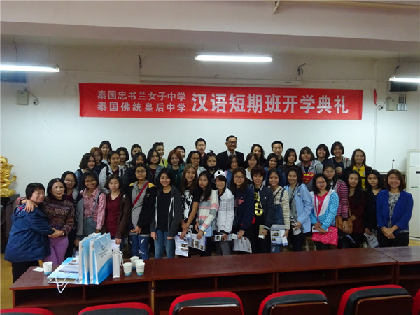 2016年04月21日,泰国忠书兰女子中学、佛统皇后女子中学汉语短期班开学典礼在我校举行。学院相关院领导、部门负责人及来自泰国佛统皇后中学校长JIRAPORN、忠书兰女子中学何帆老师等37名师生参加。开学典礼由张晓刚副院长主持。