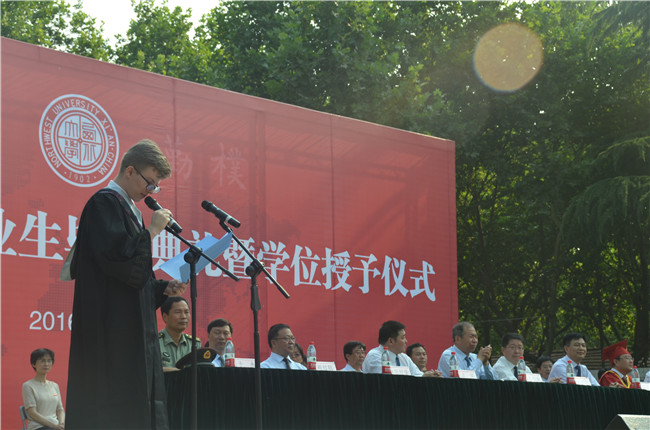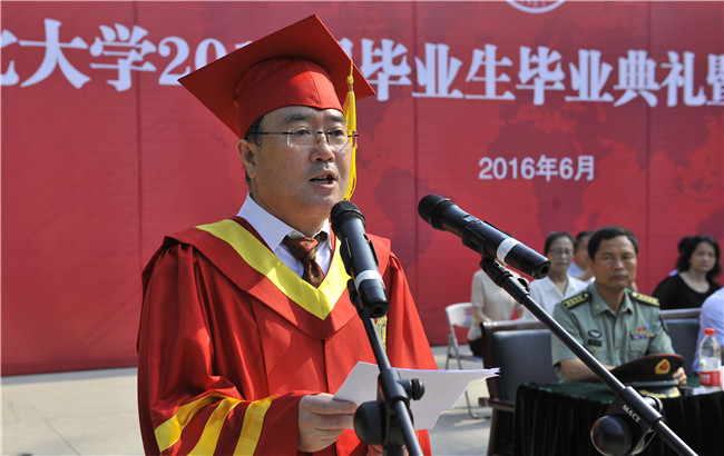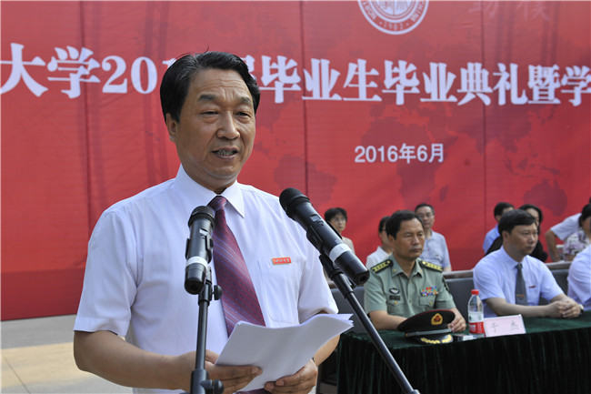 6月20日至22日,我校2016届毕业生毕业典礼分别在太白、长安和桃园校区举行。校党委书记王亚杰,校长郭立宏,校党委副书记孙国华,校党委常委、纪委书记李邦邦,校党委常委、工会主席王望弟,校党委常委、副校长王尧宇,副校长张云翔,校党委常委、副校长卓宇,校党委常委、副校长王正斌,校党委常委、总会计师张增芳,校党委常委、党委办公室主任雷忠鹏,中国人民解放军驻西北大学后备军官选培办主任于杰大校,国家教学名师耿国华、赖绍聪等专家学者,学校各部门和院系负责人,毕业生家长代表和2016届全体毕业生参加。典礼由校党委常委、纪委书记李邦邦主持。