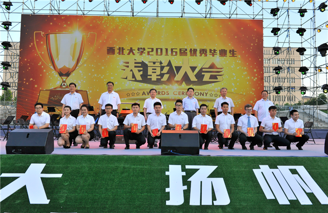 郭立宏在讲话中向优秀毕业生表示了祝贺,为广大毕业生送上了祝福。他指出,学生是一所高校得以生存和发展的前提和根本。近年来,学校围绕“教学”“学生”,不断加大优质教育资源的汇聚和投入力度,不断强化教师队伍的教书育人能力,不断提高管理队伍的服务学生水平,办学条件有了新的改善,办学水平有了新的提高,文化影响有了新的提升。广大学生围绕“成长”“成才”,刻苦学习,勇于实践,刻画出了一段又一段真实、阳光的故事,让西北大学这所百年学府不断呈现新的生机与活力。他希望全体毕业生以更为优秀的志向走向社会,以更为优秀的品质规划人生,以更为优秀的行动成就事业,将西大人的品格和风格发扬光大、付诸行动,成就自我、实现价值。