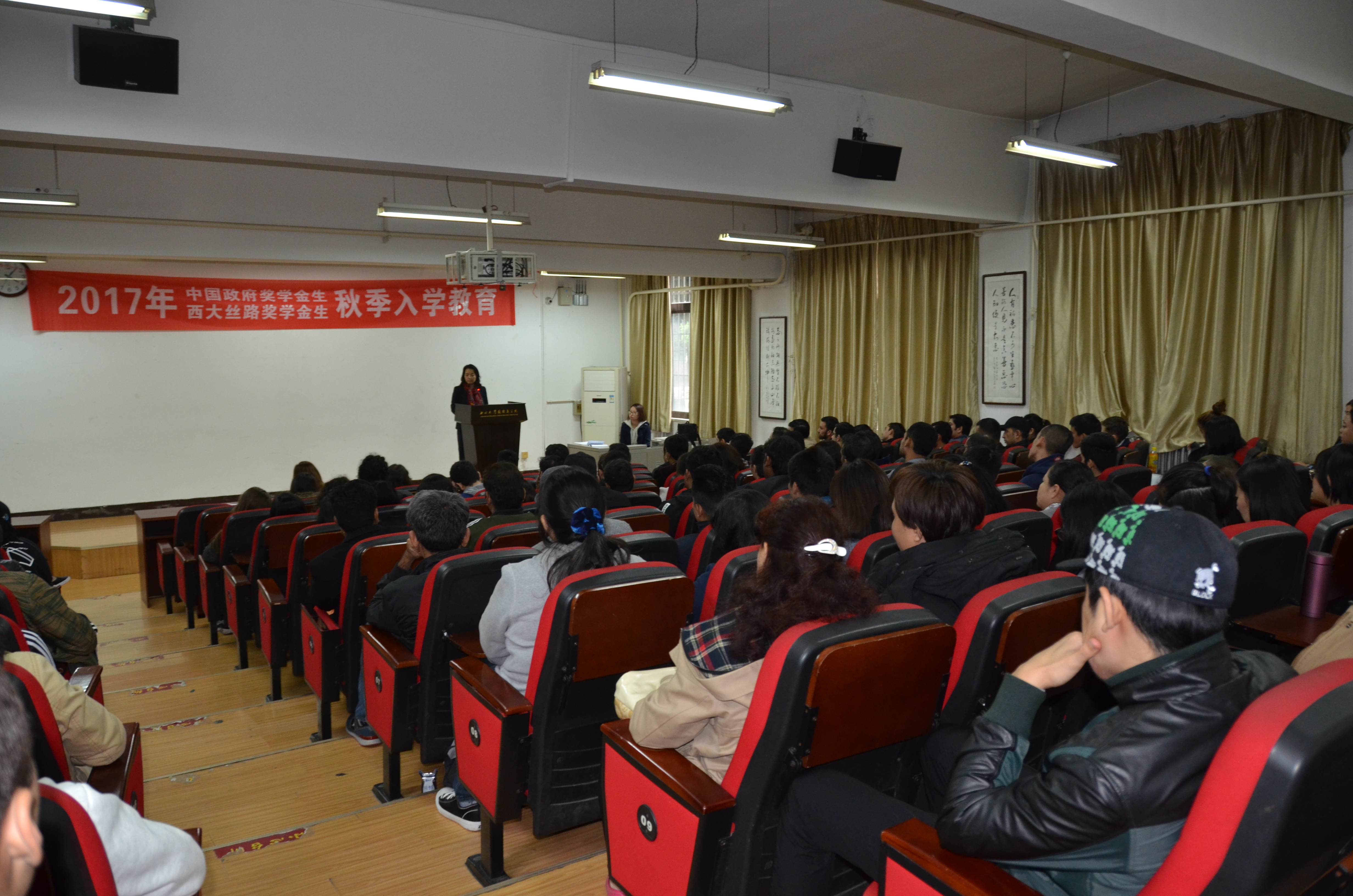 为了加强管理,培养留学生的优良学风,发挥奖学金生的积极带头作用,帮助新老奖学金学生了解中国政府奖学金和西大丝路奖学金政策以及学校学院相关规定,10月13日下午,我院在教学6号楼6112教室为所有在校奖学金生举办了入学教育讲座,一百多名奖学金生及我院院长、副院长、留学生管理办公室、招生办公室、汉学系、服务中心相关负责人和老师出席并参加了讲座。