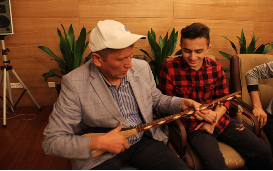 作家与留学生共同弹唱冬不拉