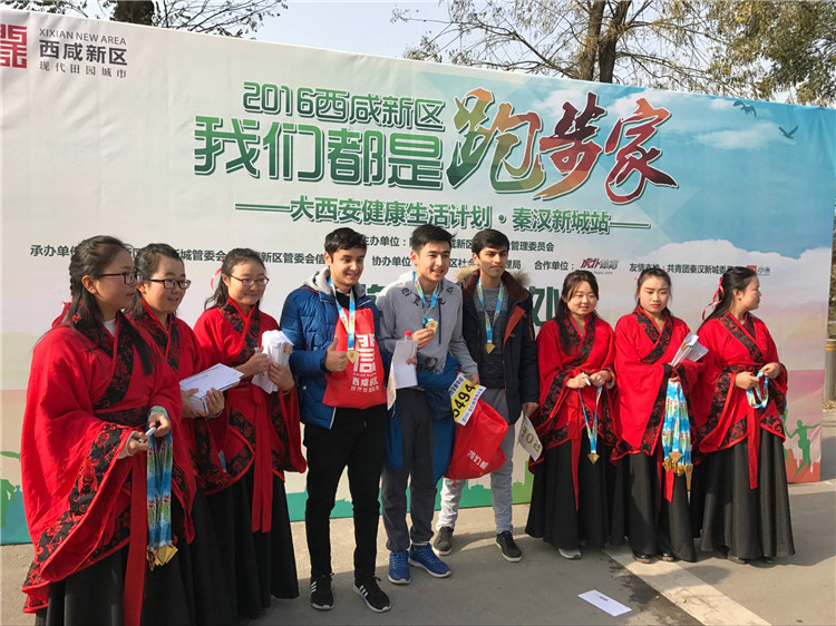 11月27日,我院留学生参加西咸新区管委会主办“我们都是跑步家”秦汉新城站的跑步活动,包括我们留学生跑团在内共有等1000多名跑步爱好者热情参与,里约奥运会女子举重项目冠军邓薇、伦敦奥运会男子举重项目冠军林清峰也参加当日跑步的活动。