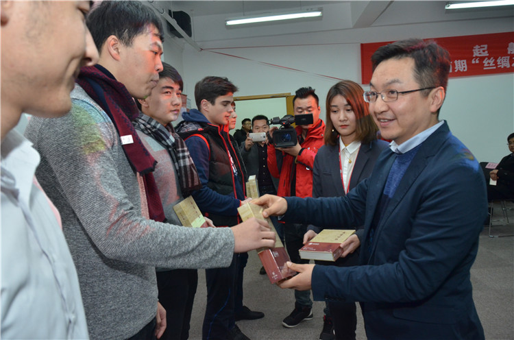 11月25日,由西咸新区双创办、信息中心,我校国际文化交流学院主办,陕西丝绸之路收藏品交易中心承办的首期“起航新丝路•丝绸之路文化使者”特训营启动。西咸新区副主任王飞,陕西丝绸之路收藏品交易中心负责人,校党委副书记、副校长贾明德,我校40留学生代表参加了启动仪式。