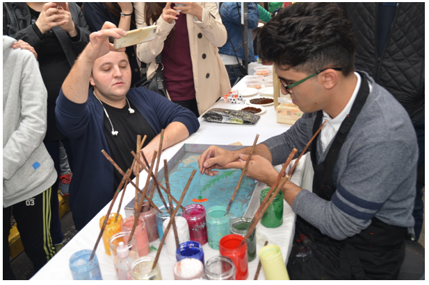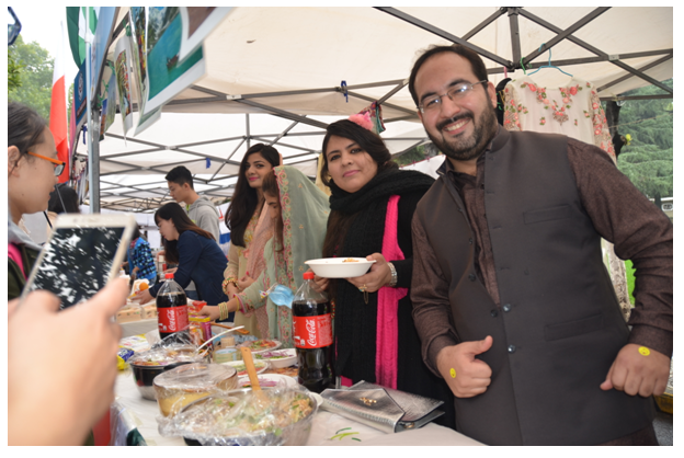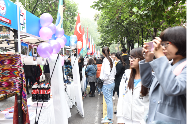 活动于11:30分正式开始,由文化展览和文艺演出两部分构成。活动现场,26个国家以展馆的形式向参观者展示各自国家的服饰、物品、风景照片、美食、音乐等,展现了不同国家的文化特色和风土人情,土耳其水画表演、德国啤酒、俄罗斯列巴、中亚服饰、手抓饭等,都给参观者留下了难忘的印象。而留学生们精心制作的特色美食,更是成为文化节一道亮丽风景线。随着踏板操的登场,来自五大洲的留学生们纷纷亮相献艺,丝路风情舞、13种语言歌曲联唱、蒙古舞、泰国祈福舞、厄瓜多尔拉丁舞、越南服装秀、非洲手鼓、中国武术表演等20个精彩纷呈的表演将现场气氛一次次推向高潮。