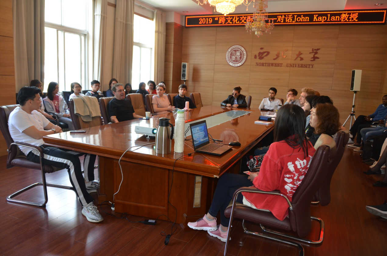 2019年4月18日,1992年普利策专题新闻摄影奖得主,美国最有成就的纪实摄影家之一,美国佛罗里达大学教授约翰·坎普兰应邀做客西北大学56net亚洲必赢手机,与我校来自15个国家的35名留学生以“跨文化交际“为主题进行了深入的探讨。