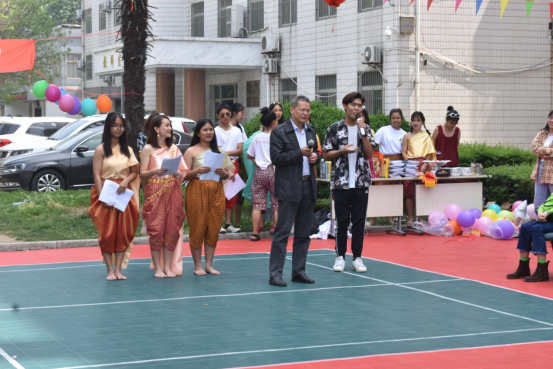 ORACHA TANAKORN、张银仓分别为现场泰国学子送上了节日祝福和期望。泰国学生李明金向大家介绍了宋干节的来源及节日习俗。泰国罗勇中学、姹棱宽女子中学的学生们还带来了精彩的泰拳、传统舞蹈表演。随后国际学生选美比赛将活动的气氛推向高潮,来自韩国的姜惠源、李河林及来自塔吉克斯坦的阿依古丽同学分别获得本次比赛的冠亚季军。