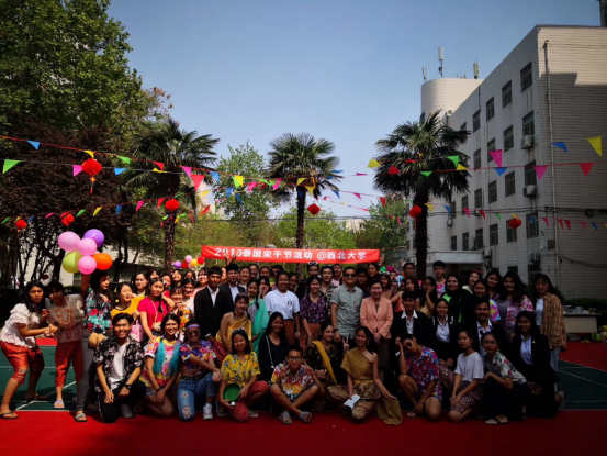 4月11日,我院泰国留学生自发组织泰国宋干节庆祝活动。泰国驻西安领事馆总领事MISS. ORACHA TANAKORN、副领事MR. THAWAT SUMITMOR、领事MR.SARAWUT CHAIWIRAT,王国栋常务副部长、张银仓副院长、高淑君副院长,泰国罗勇中学、泰国姹棱宽女子中学及56net亚洲必赢手机三百余名师生参加了本次活动。