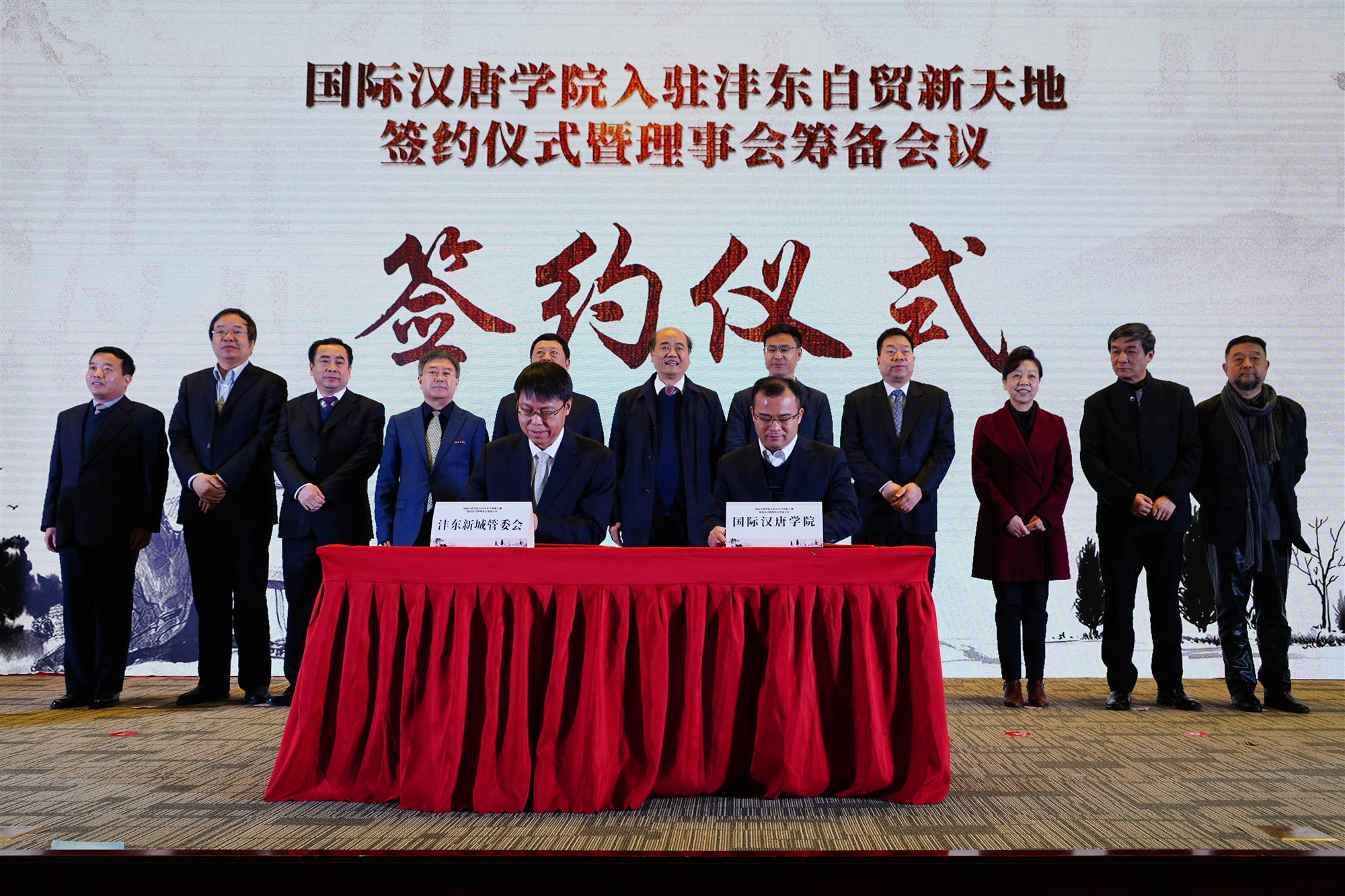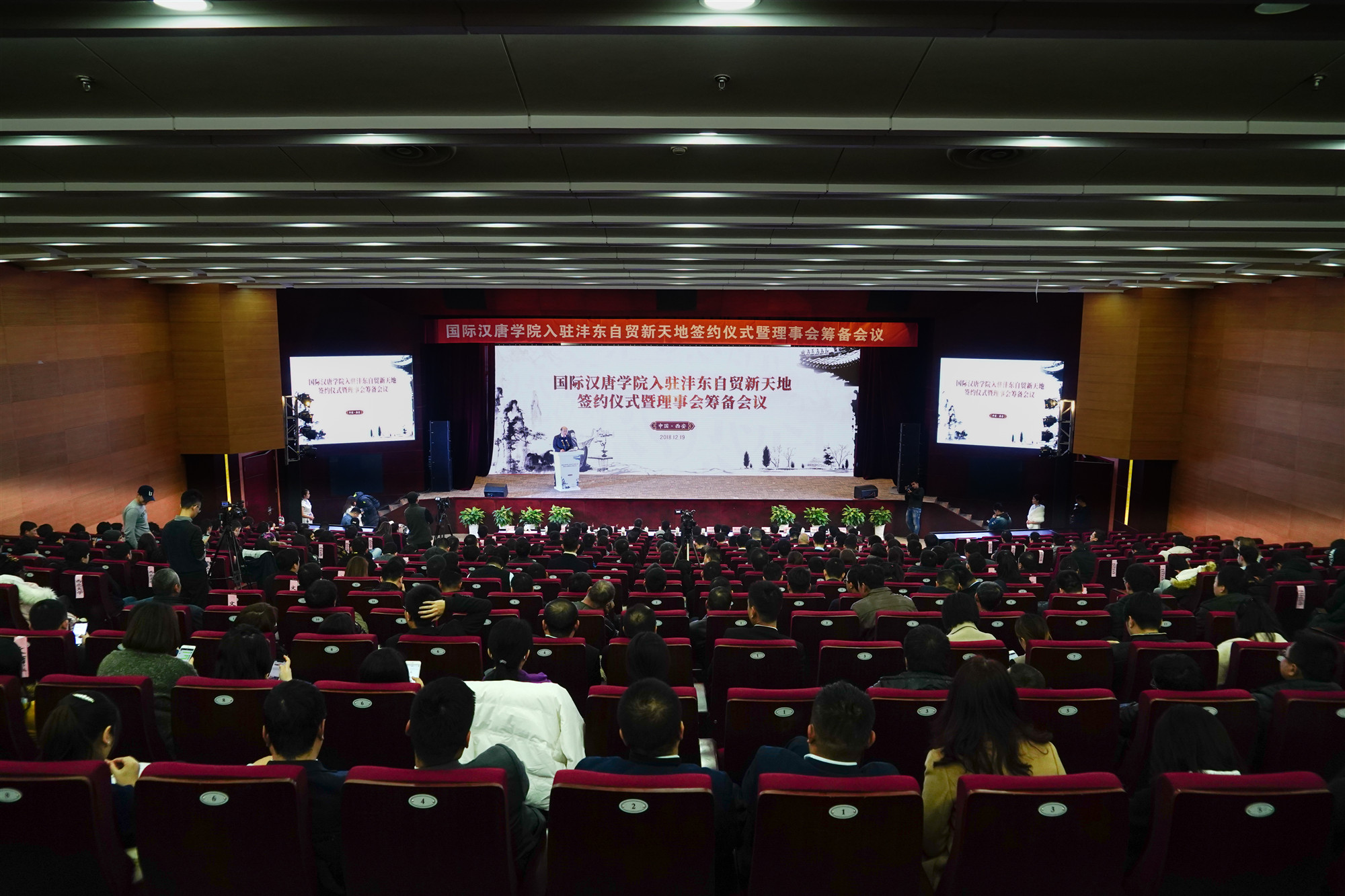 12月19日上午,国际汉唐学院入驻沣东自贸新天地签约仪式在沣东新城举办。陕西省教育厅副厅长刘建林、范永斌,陕西省文化和旅游厅副厅长盛义军,西咸新区党工委委员、管委会副主任刘优军,沣东新城党委书记、管委会主任柳政,我校校长郭立宏,校党委常委、副校长奚家米以及陕西师范大学、陕西中医药大学、西安工业大学、西安美术学院、西安体育学院、西安音乐学院等相关负责人、专家以及来自省内多所高校的留学生近500余人参加活动。