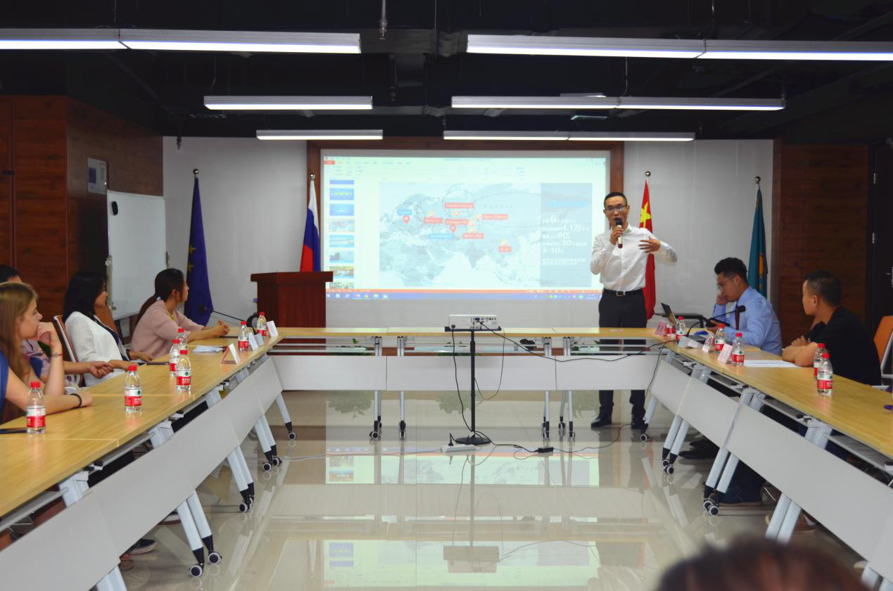 西安港﹒丝路城与西北大学“校企合作”开班仪式9月5日在西安国际港务区港务大道陆港大厦举行,我院任惠莲院长、魏建国主任、带队老师王曼以及来自丝路沿线国家的22位留学生参加了此次开班仪式。