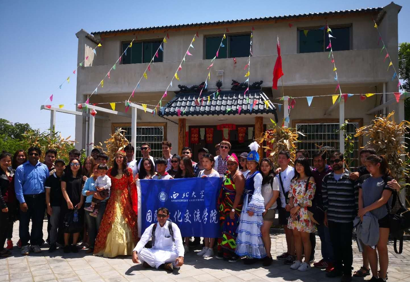 4月29日上午,来自西北大学13个国家的55名国际学生参加了周至县竹峪镇政府组织的“美丽乡村行”活动。