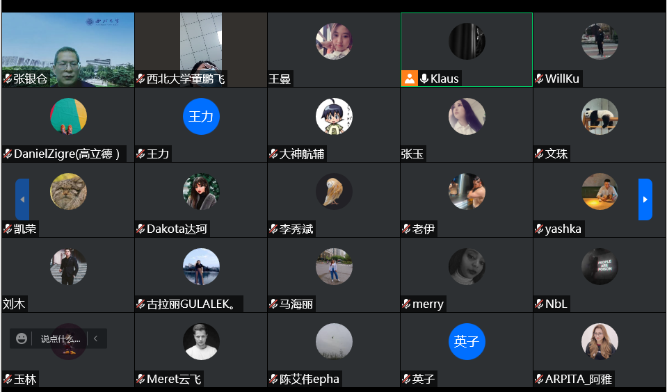 董鹏飞老师首先介绍并强调疫情期间配合学校、社区开展防疫防控工作的重要性及学校近期于疫情防控工作新要求新变化。其次阿富汗籍周鑫伟、埃塞俄比亚籍美丽、韩国籍李秀斌、埃及籍艾小英等同学分别用中英双语为参会留学生全文宣读《西北大学关于新冠肺炎疫情防控期间学生违纪违规处理补充规定》。张银仓副院(部)长在总结中讲到,疫情防控各项规定不仅是校纪校规,同样也涉及中国法律法规,大家务必遵守学校及社区的各项防疫规定,并积极配合疫情防控。要求所有校内外留学生要参加组织的核酸检测,并及时在网上填报。希望大家近期做到学习考试、锻炼身体及疫情防控三不误。说明包括任惠莲部(院)长在内的多名老师在学校二十四小时值守,辅导员2—3天会和各自分管学生电话联系,积极帮助校内外学生解决学习生活上遇到的各种问题。