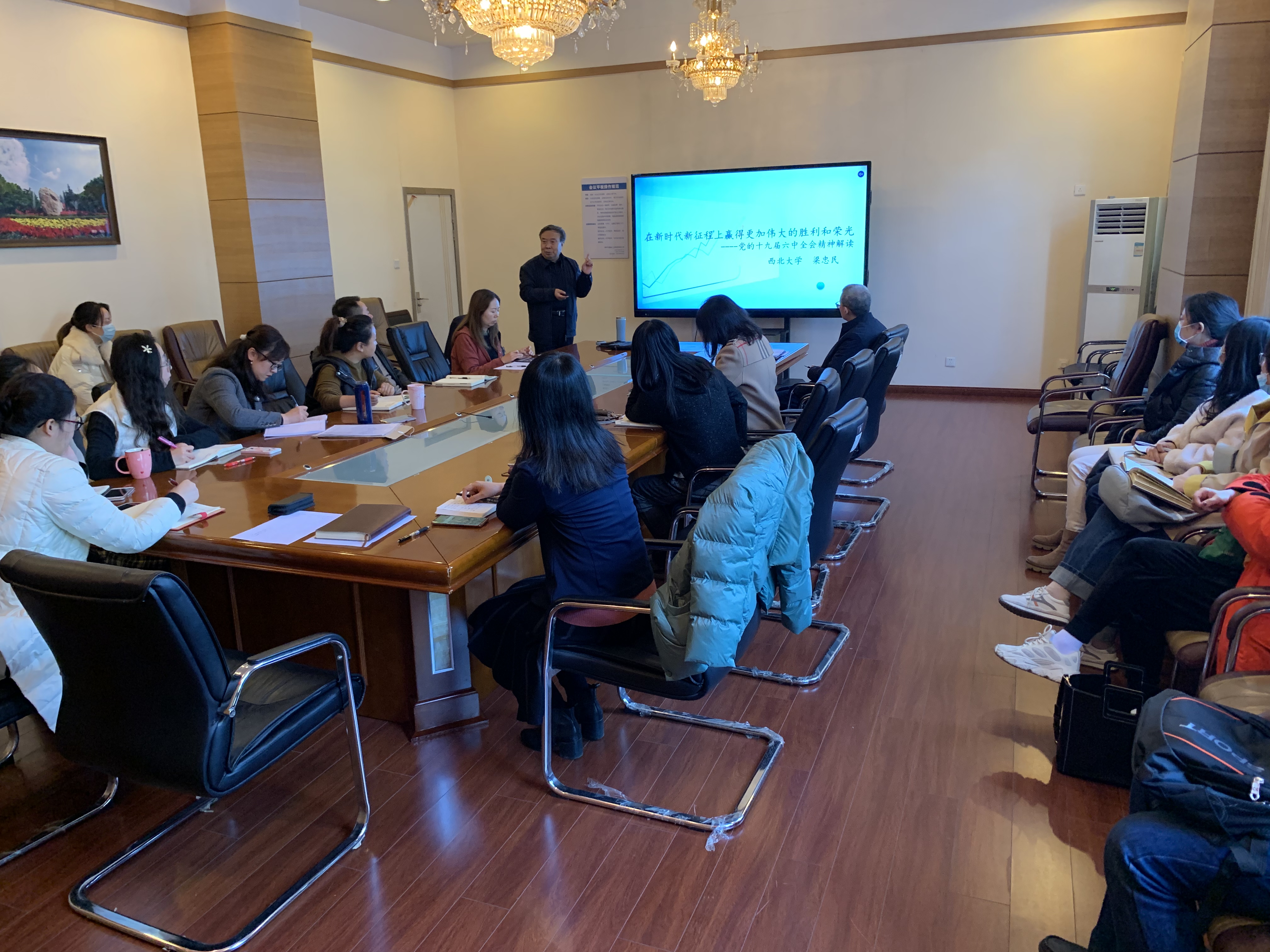 11月24日,国际部(院)党支部邀请梁忠民教授作了题为“在新时代新征程上赢得更加伟大的胜利和荣光——党的十九届六中全会精神解读”的专题报告。支部全体党员参加了报告会。