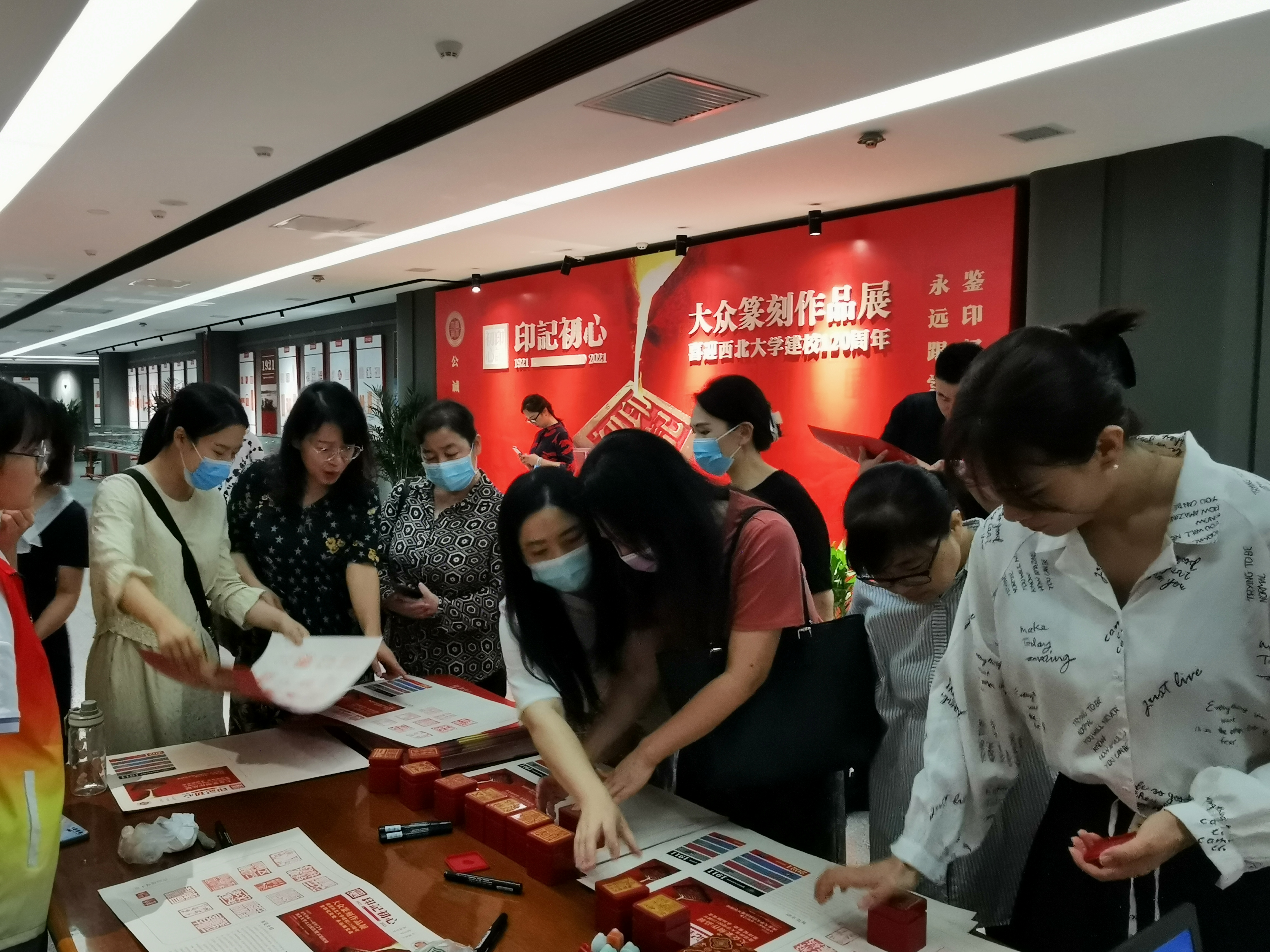 9月15日下午,56net亚洲必赢手机组织全体教职工参观了“印记初心——大众篆刻作品展”。本次展览是“印记初心——庆祝中国共产党成立100周年大众篆刻作品展”全国巡展的首展,由中央文献出版社、西泠印社指导,中国艺术研究院篆刻院、中国国际贸易中心等联合国内150余家单位共同举办,以“鉴印忆党史 永远跟党走”为主题,共创作和展出300余枚大众篆刻作品。全体教职工通过参观展览,重温了中国共产党建党百年的光辉历史,体验了中国优秀传统文化的魅力,推动了国际部院党史学习教育深入开展。
