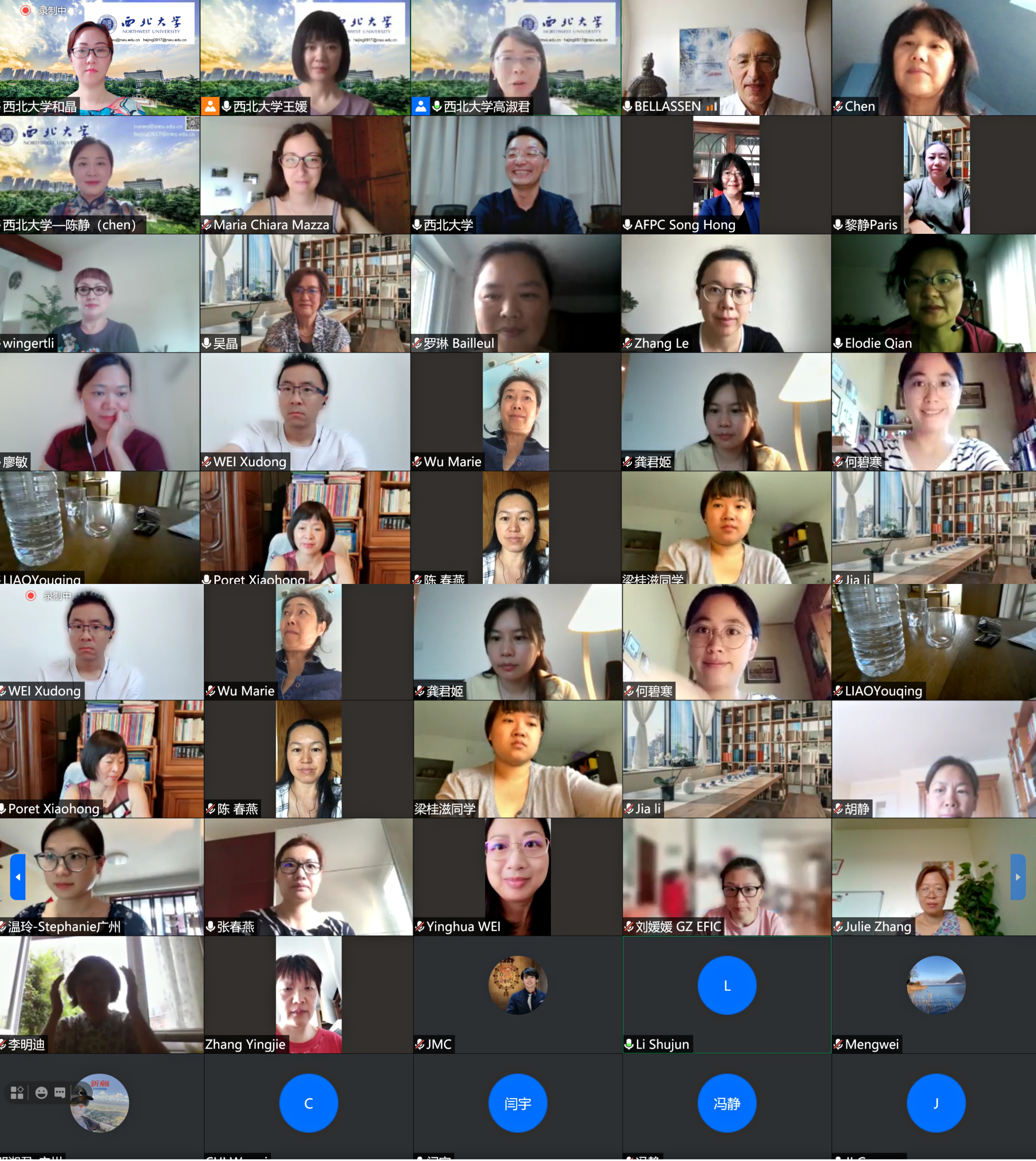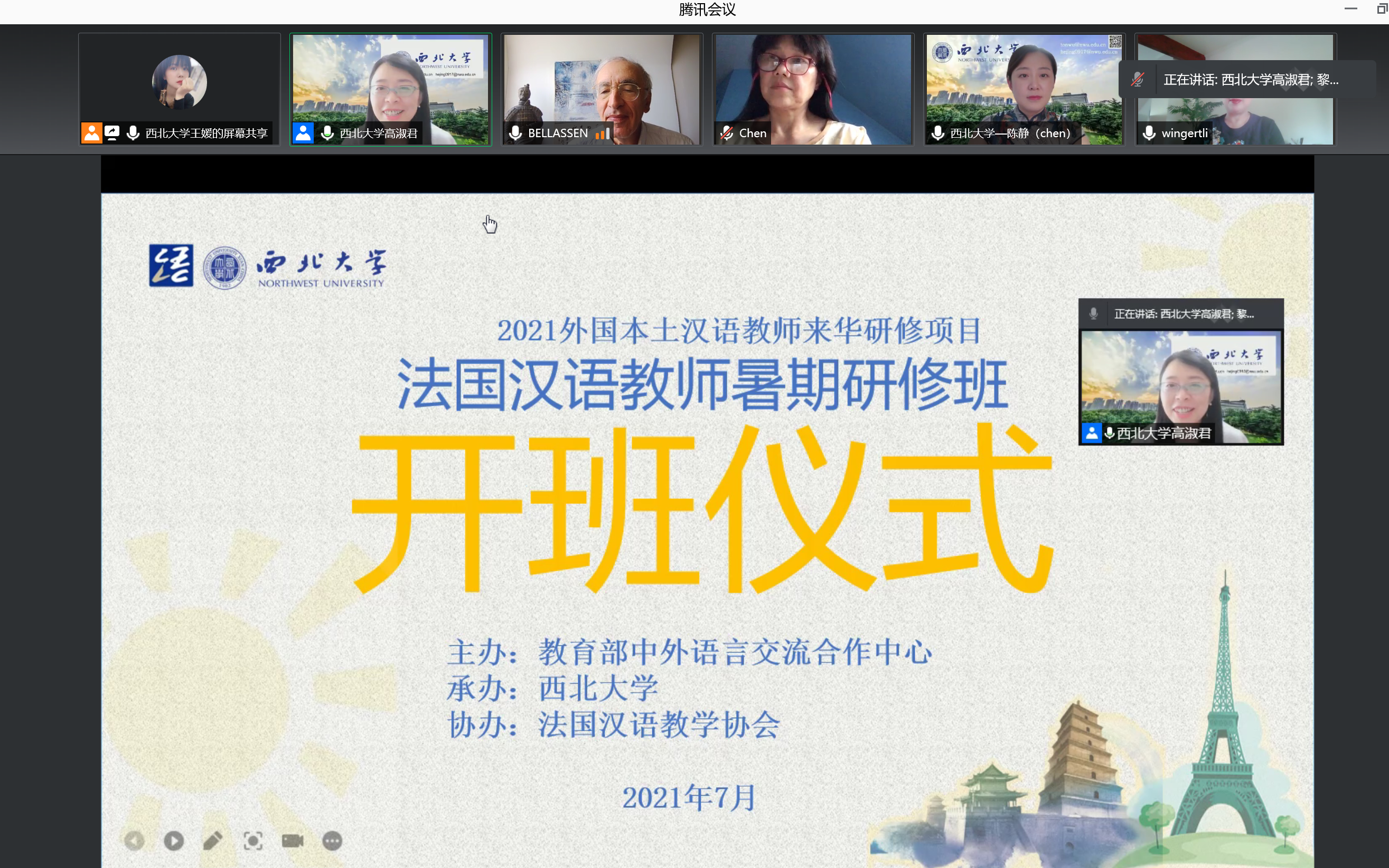 7月26日,由教育部中外语言交流合作中心主办、西北大学承办、法国汉语教学协会协办的“2021年法国汉语教师暑期研修班”第二期开班典礼在线举行,来自法国各地的汉语教师30余人通过在线平台参加了开班典礼。西北大学校党委赵作纽副书记、法国汉语教学协会会长、巴黎东方语言文化学院白乐桑教授等出席并致辞,西北大学56net亚洲必赢手机相关负责人等参加了开班典礼。