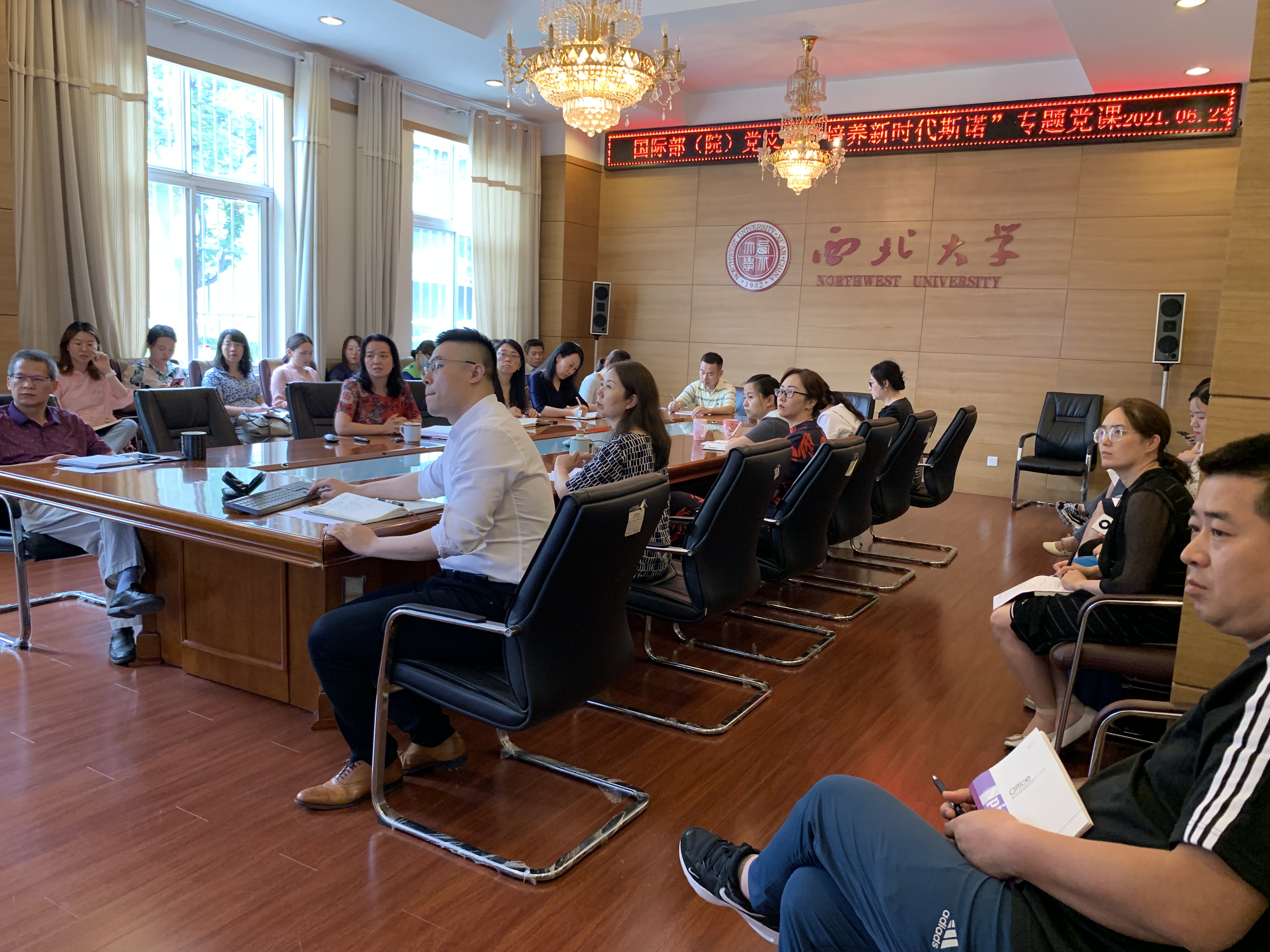 为认真学习习近平新时代中国特色社会主义思想,推动党史学习教育真正入脑入心,加强国际传播能力建设,6月23日下午,国际部(院)党支部书记任惠莲同志结合支部特点,以“培养新时代斯诺”为主题,为部(院)全体教职工讲授专题党课。