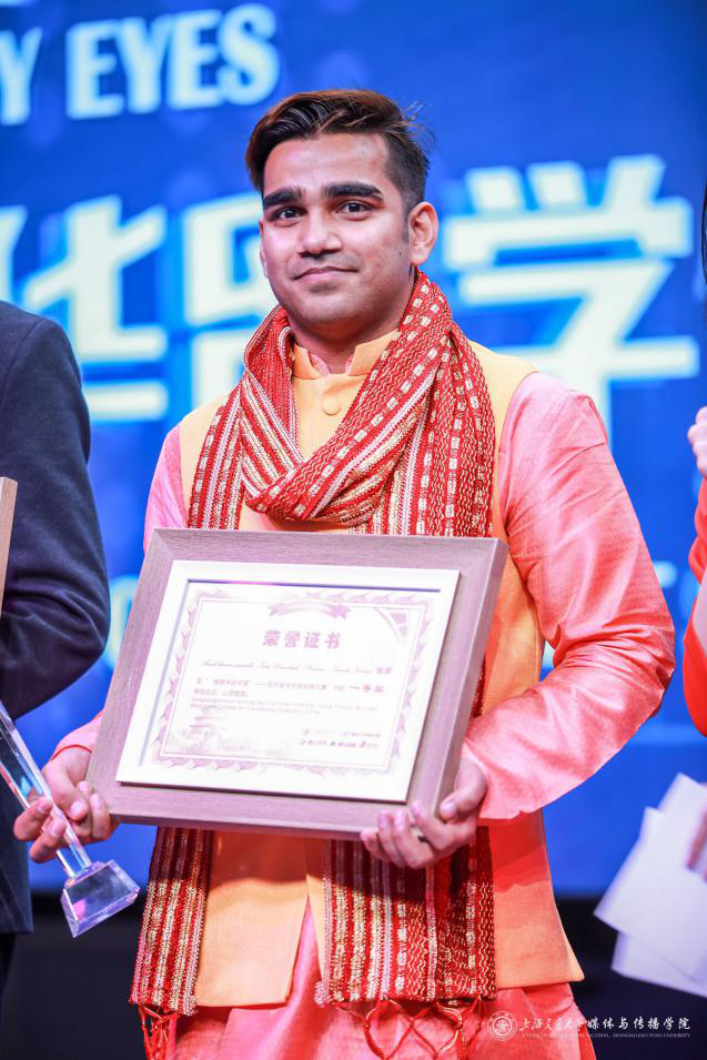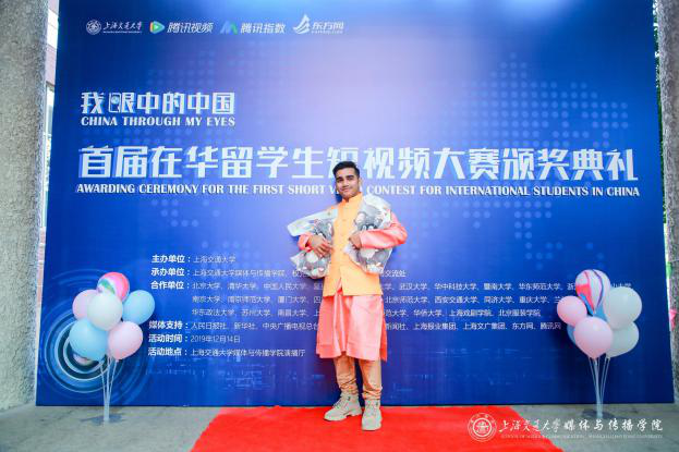 2019年12月15日,“我眼中的中国”——首届在华留学生短视频大赛颁奖典礼在上海交通大学媒体与传播学院演播厅隆重举行,我校印度籍留学生王杰(Anish)凭借作品《西北大学留学生眼中的中国年》斩获一等奖,登上颁奖舞台,他是陕西省唯一一位获奖的参赛选手。