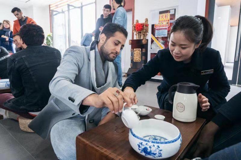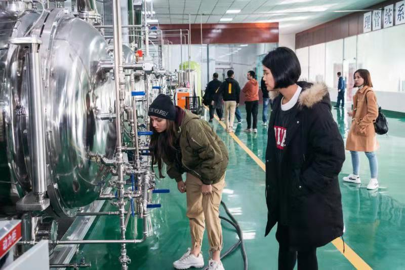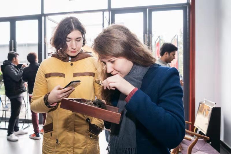 10月26日,国际学生们参观了泾河茯茶有限公司和陕西北极宫茶业有限公司。通过对当地优秀茶企研发中心实验室和现代化制茶车间的观摩以及现场交流讨论,了解了当代陕西茯茶市场的多元化发展,以及传统茯茶加工工艺向“工业化”、“工程化”、“4.0时代”的质的转变,并亲身体验了茯茶制作、冲泡工艺,近距离感受茯茶文化的独特魅力。
