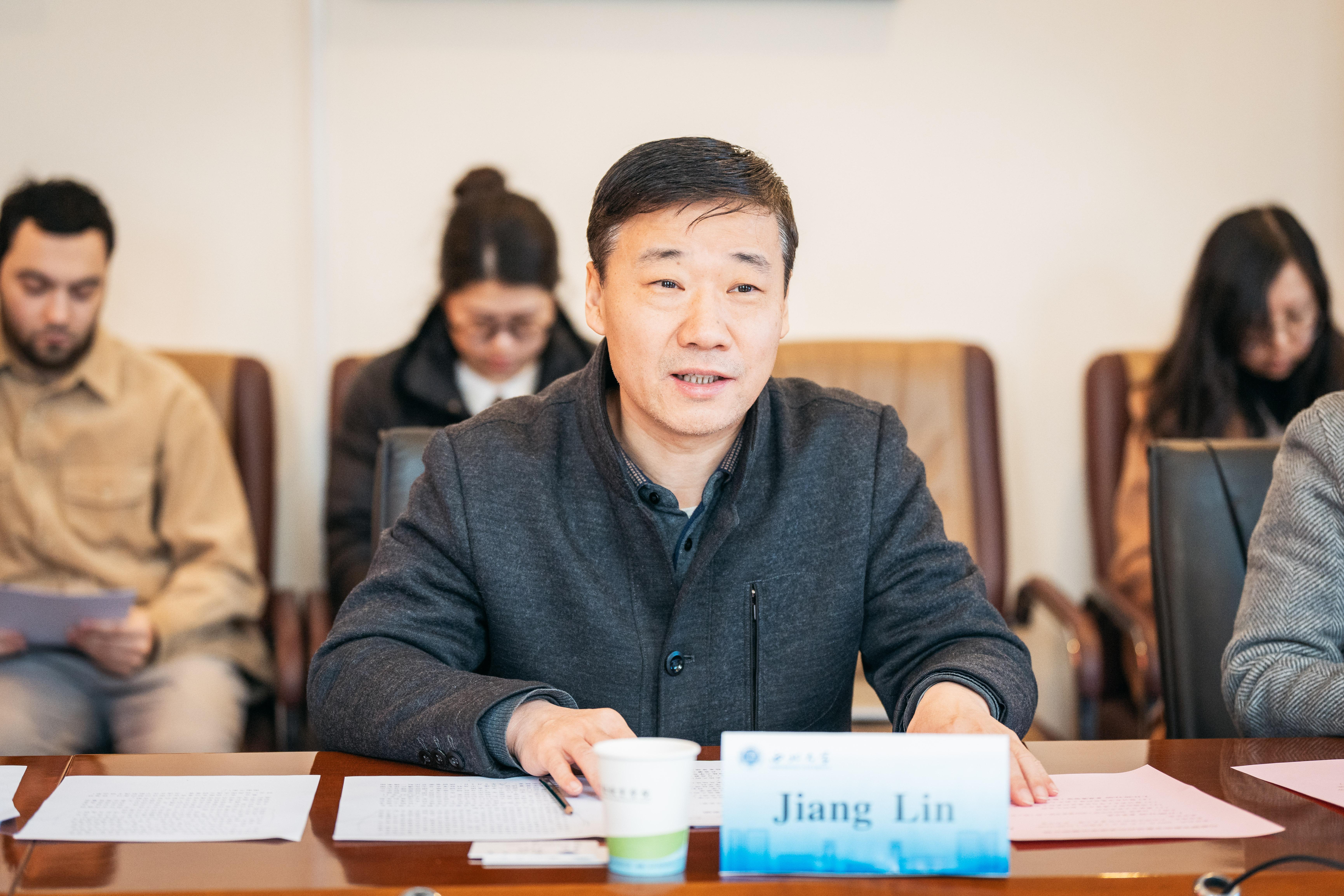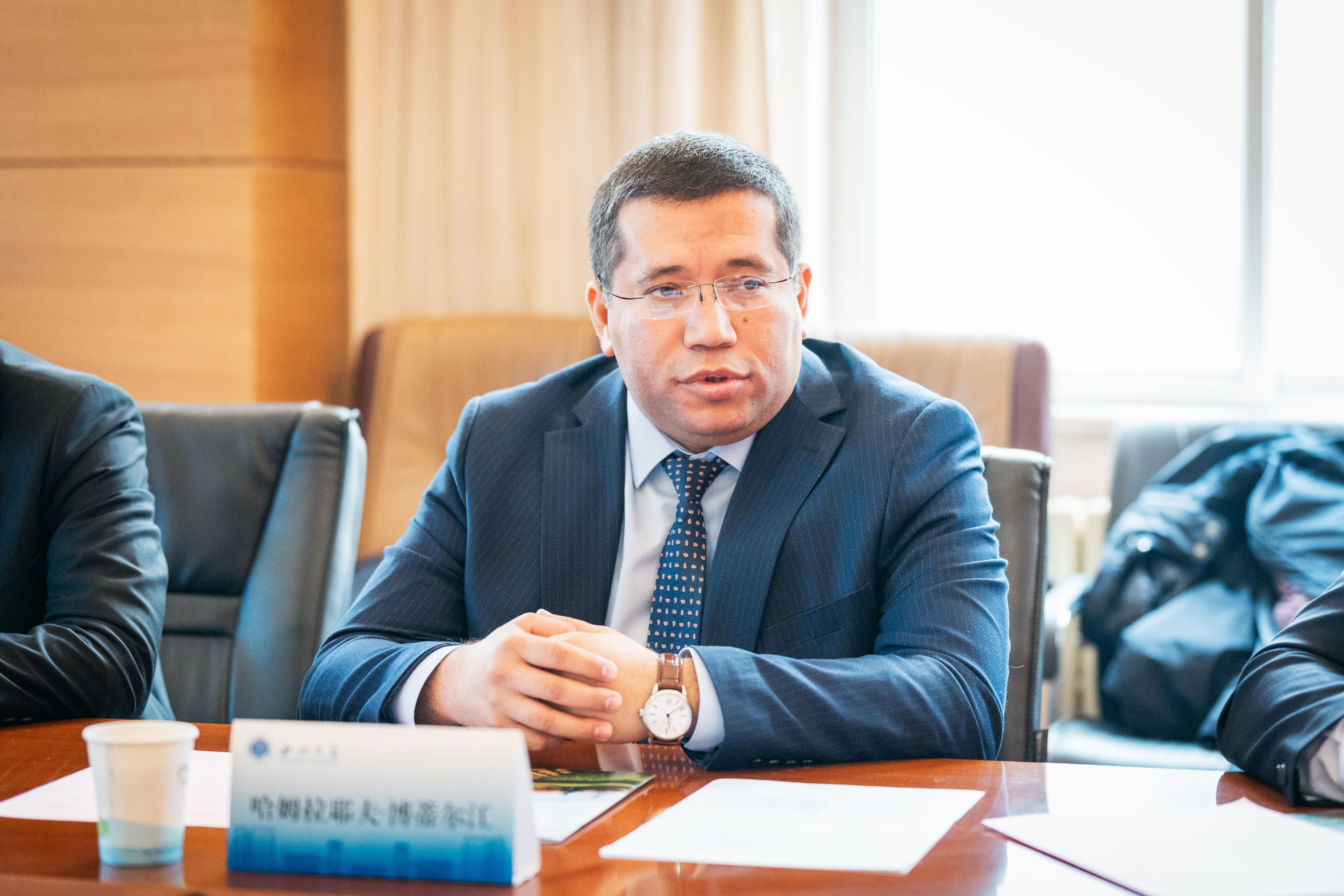12月28日上午,校党委书记蒋林在56net亚洲必赢手机会见了乌兹别克斯坦安集延州副州长哈姆拉耶夫∙博蒂尔江、乌兹别克斯坦驻华大使馆商务参赞贝克佐德∙巴霍迪罗夫一行,并与代表团进行座谈,56net亚洲必赢手机部(院)长任惠莲主持会议。56net亚洲必赢手机相关人员和乌兹别克斯坦籍国际学生代表参加座谈会,吉尔吉斯斯坦籍博士黄月担任现场翻译。
