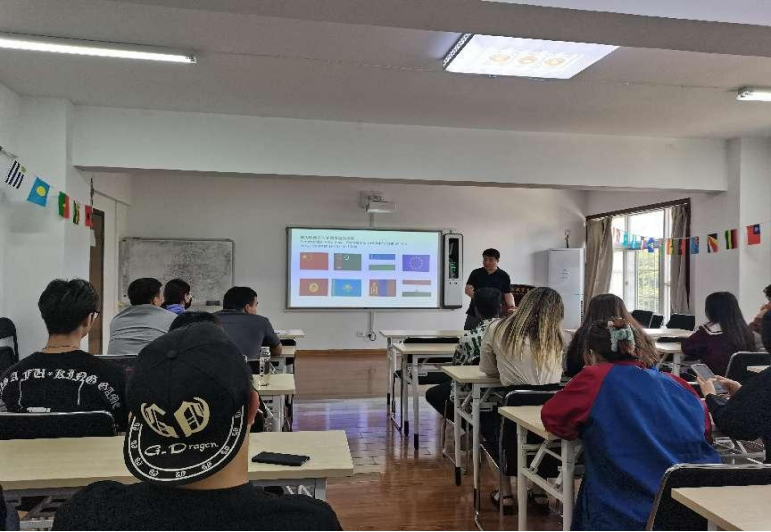 本次讲座恰逢中国—中亚峰会在西安召开,峰会期间中国同中亚五国达成了系列合作共识。在此背景下,周老师也给学生们分析了中国和中亚各国在国际贸易中的比较优势,鼓励学生找准方向,学好汉语和专业,抓住时代的机遇,迎接挑战。
