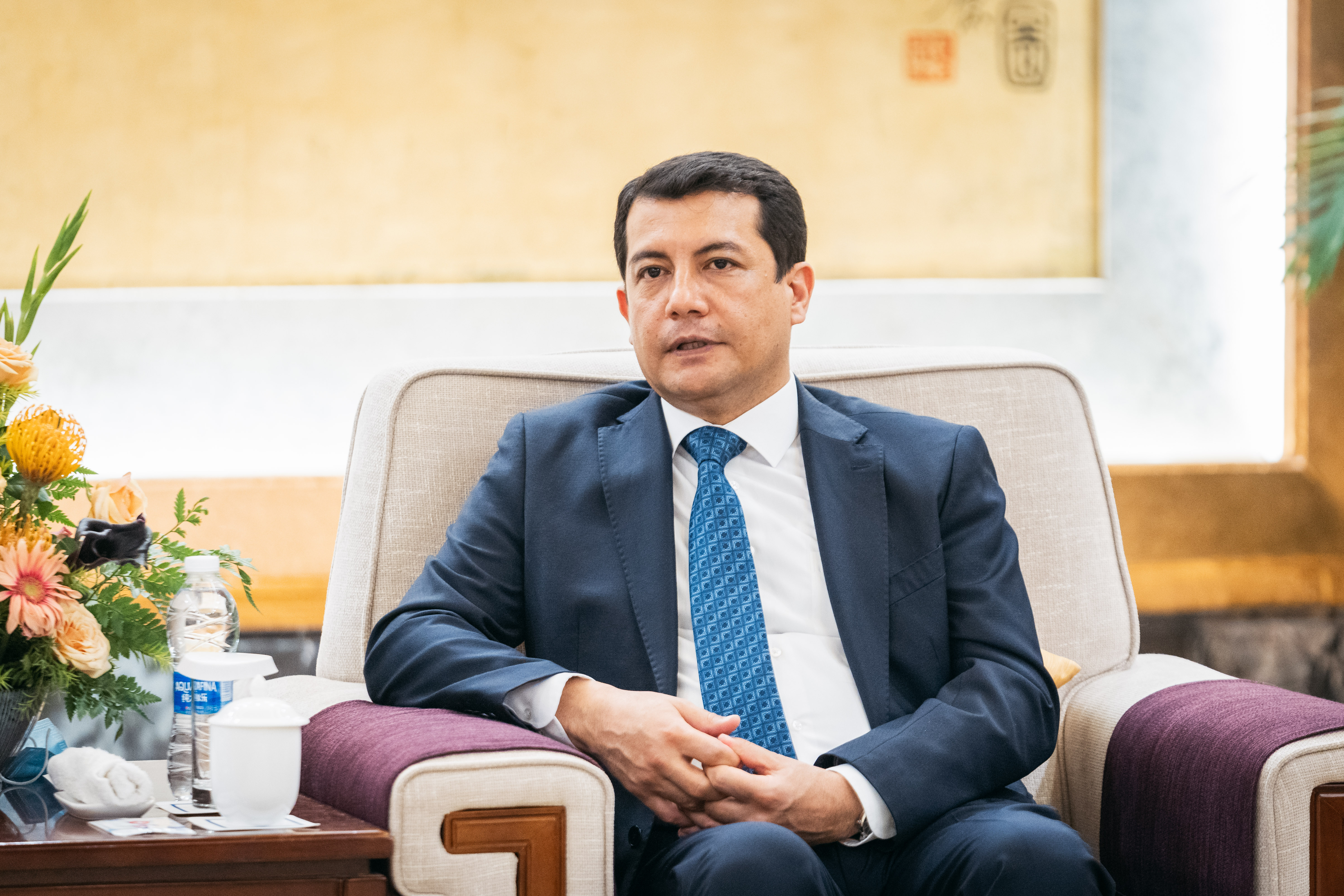 会谈中,郭立宏向阿尔济耶夫大使介绍了我校与乌兹别克斯坦高校及研究机构前期合作情况,特别是我校中乌联合考古科研进展以及乌兹别克斯坦籍国际学生培养现状,并向乌兹别克斯坦驻华使馆对于双方合作提供的帮助表示感谢。