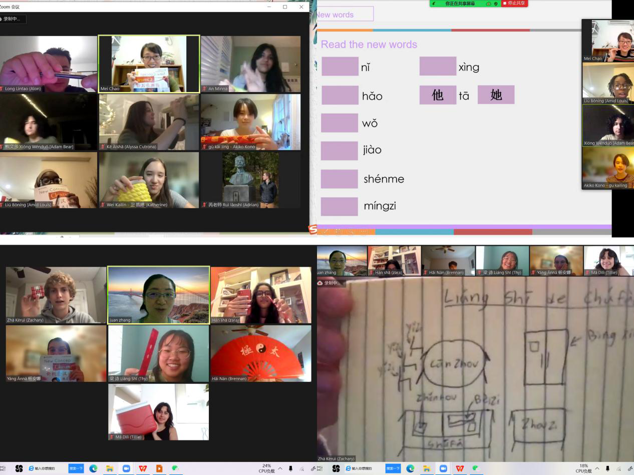 此外,我院还积极利用该项目搭建语言文化交流平台,助力中外青少年的交流与沟通。文学院汉语国际教育专业、外国语学院英语专业的多名学生,通过线上平台与美国学生开展双语交流活动,在语言学习和专业学习方面互相帮助,在文化分享和交流中增进彼此的了解。