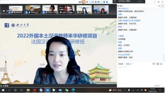 西北大学国际合作部任惠莲部长对法国汉语教学协会为此次培训项目所做的努力表示感谢,希望未来能在中国或法国与教师们共话国际中文教育的发展。