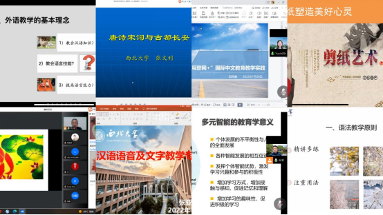 北京时间7月22日下午,为共同促进法国汉语教师与国内专家学者的交流与合作,探索汉语国际教育事业发展新方式、新道路,在教育部中外语言交流合作中心的大力支持下,由西北大学承办、法国汉语教学协会协办的“2022年法国汉语教师暑期线上研修班”圆满落幕。来自法国各地大、中、小学的63名一线本土汉语教师通过云端会议模式参与了为期一周的培训课程。