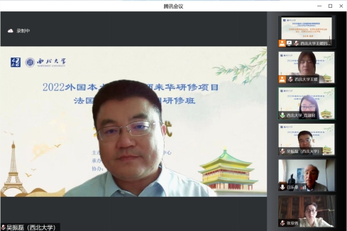 吴振磊副校长在致辞中欢迎各位老师的到来,希望此次研修能够搭建更好的中文教育交流平台,进一步促进法国汉语教师与西北大学及国内汉语教师、专家学者的交流与合作。