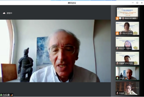 法国著名汉学家白乐桑教授在致辞中对中外语言交流合作中心一直以来对法国汉语教学和本土汉语师资培养的大力支持表示感谢,也对前期西北大学承办项目的良好效果及此次筹备项目的严谨态度表示赞赏。