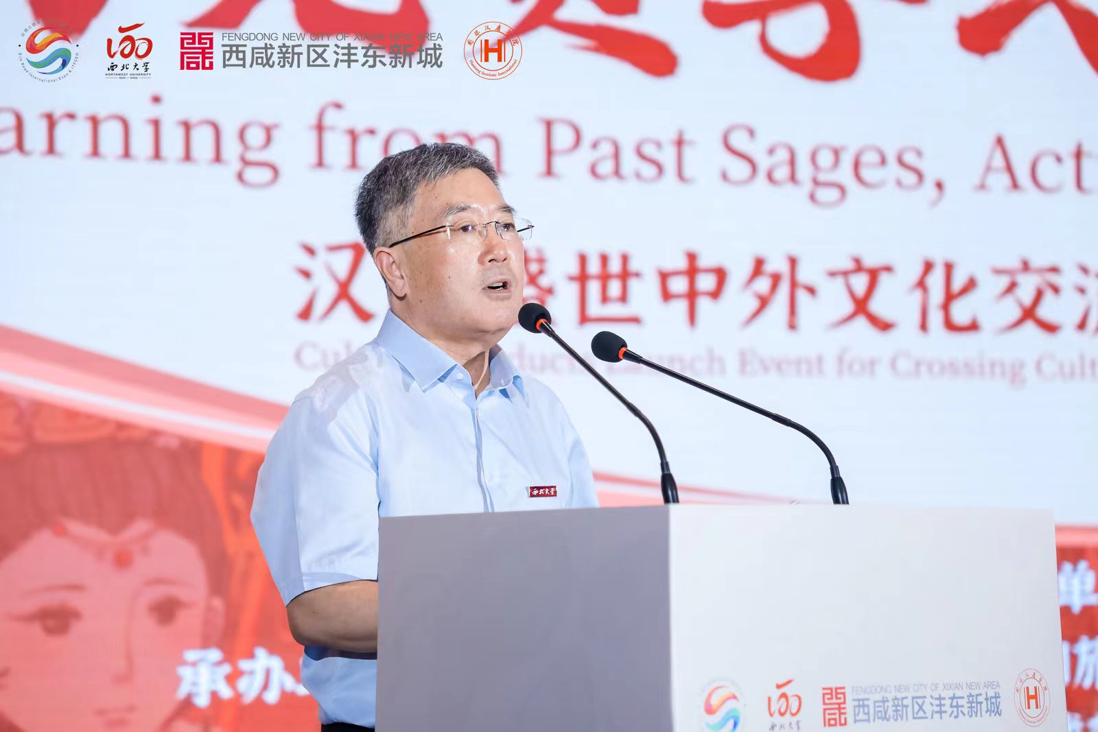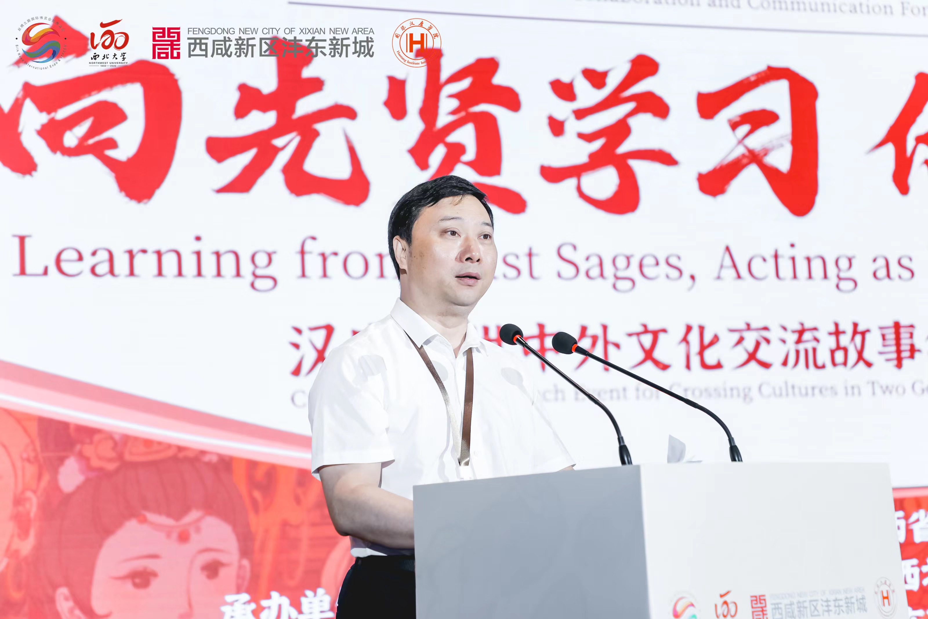 7月16日上午,由省政府主办的“向先贤学习,做交流使者”——汉唐盛世中外文化交流故事集系列文化产品发布会在西咸新区沣东新城举办,共有来自政界、学术界、艺术界的近百位中外代表出席了这次文化盛会。中国高等教育学会外国留学生教育管理分会理事长刘京辉、陕西省教育厅一级巡视员刘宝平、我校校长郭立宏、陕西省文化和旅游厅副厅长孟祥国、西咸新区沣东新城管理委员会副主任马建昌先后致辞,我校党委常委、副校长赖绍聪主持活动。
