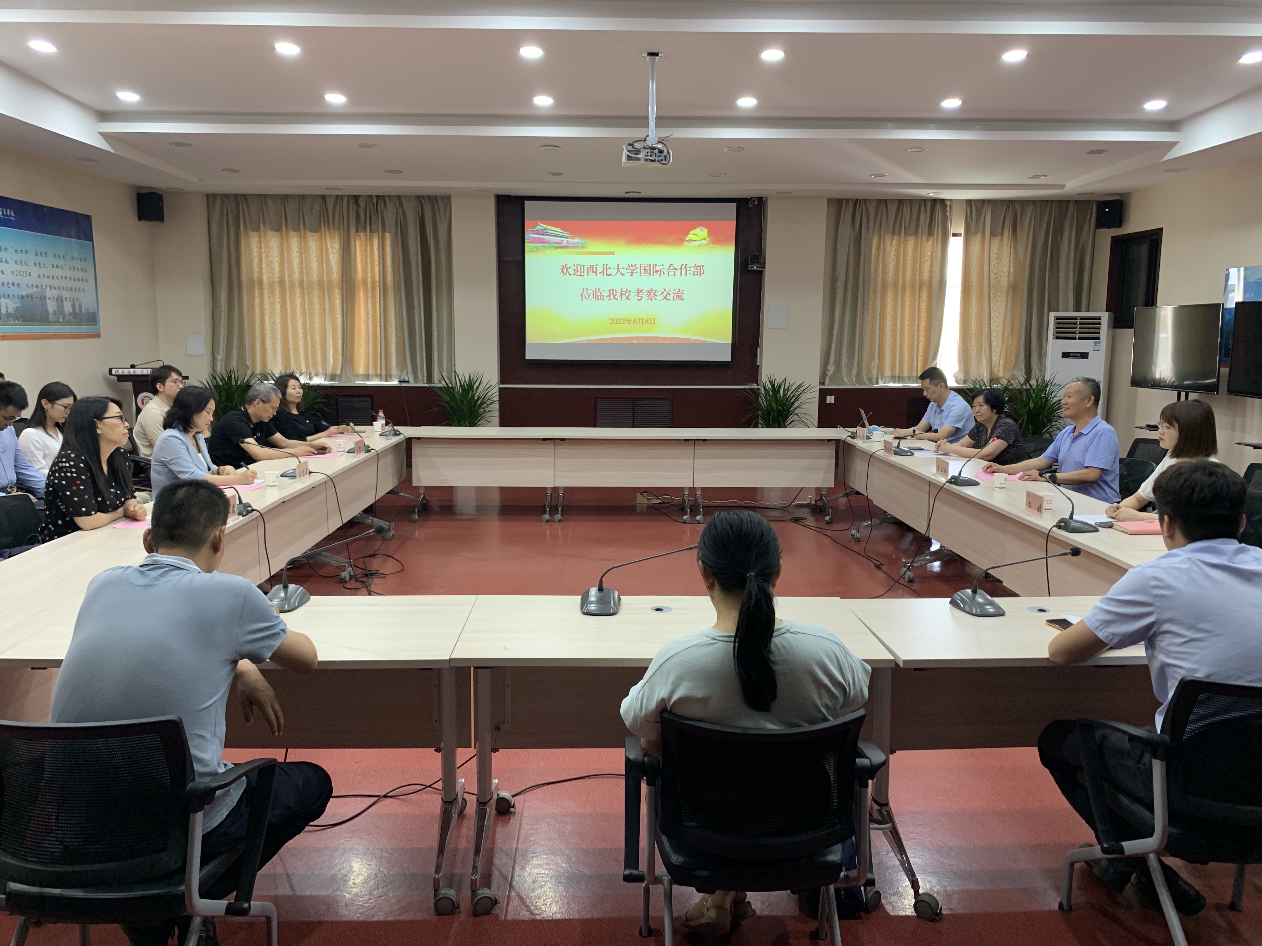陕西国际商贸学院校长王正斌在致辞中热烈欢迎部(院)党支部一行到学院参观调研,并对学院的基本情况和专业特色进行了介绍。在交流中,陕西国际商贸学院国际经济学院副院长冯明详细介绍了本学院全国党建工作样板支部建设的经验做法、成效以及国际贸易专业相关的校企合作、实践教学、教学改革等情况。部(院)相关负责人介绍了我校留学生培养、中亚学院发展情况及留学生国贸专业的特色化建设情况和支部党建情况。