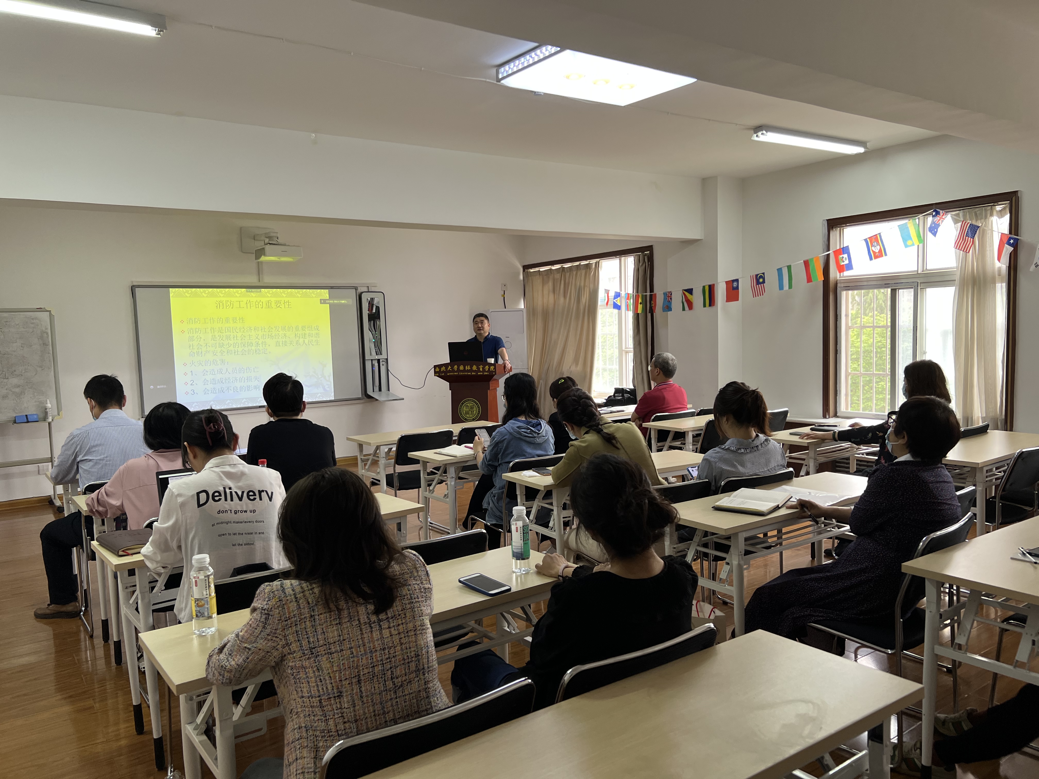 4月27日,56net亚洲必赢手机邀请保卫处消防科科长娄彦功举办消防安全知识培训。讲座采取线上+线下方式举行,全体行政教辅人员在线下参加,教师和国际学生通过线上方式参加。