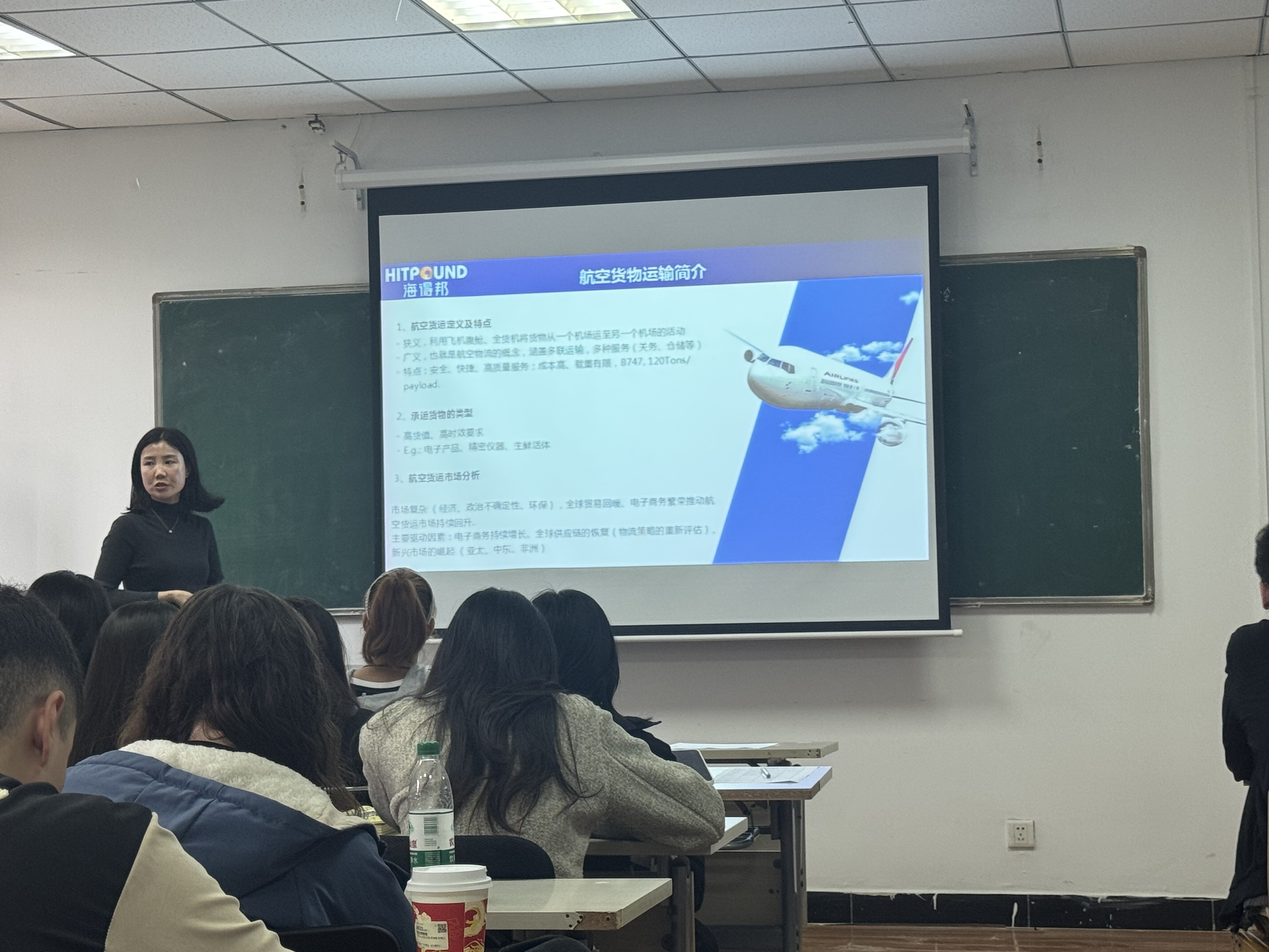 随后,西安国际港务区海得邦物流有限公司金红梅总经理介绍了国际物流特别是中欧/中亚班列的运输特点和承运条件,分析了国际物流的相关操作流程及操作中的细节和难点。海得邦(陕西)供应链科技有限公司汪涛总经理介绍了航空货运中航空货运飞机机型和航空货物询价要素等内容,并以疫苗冷链出口为例解析了国际空运的具体流程和特点。