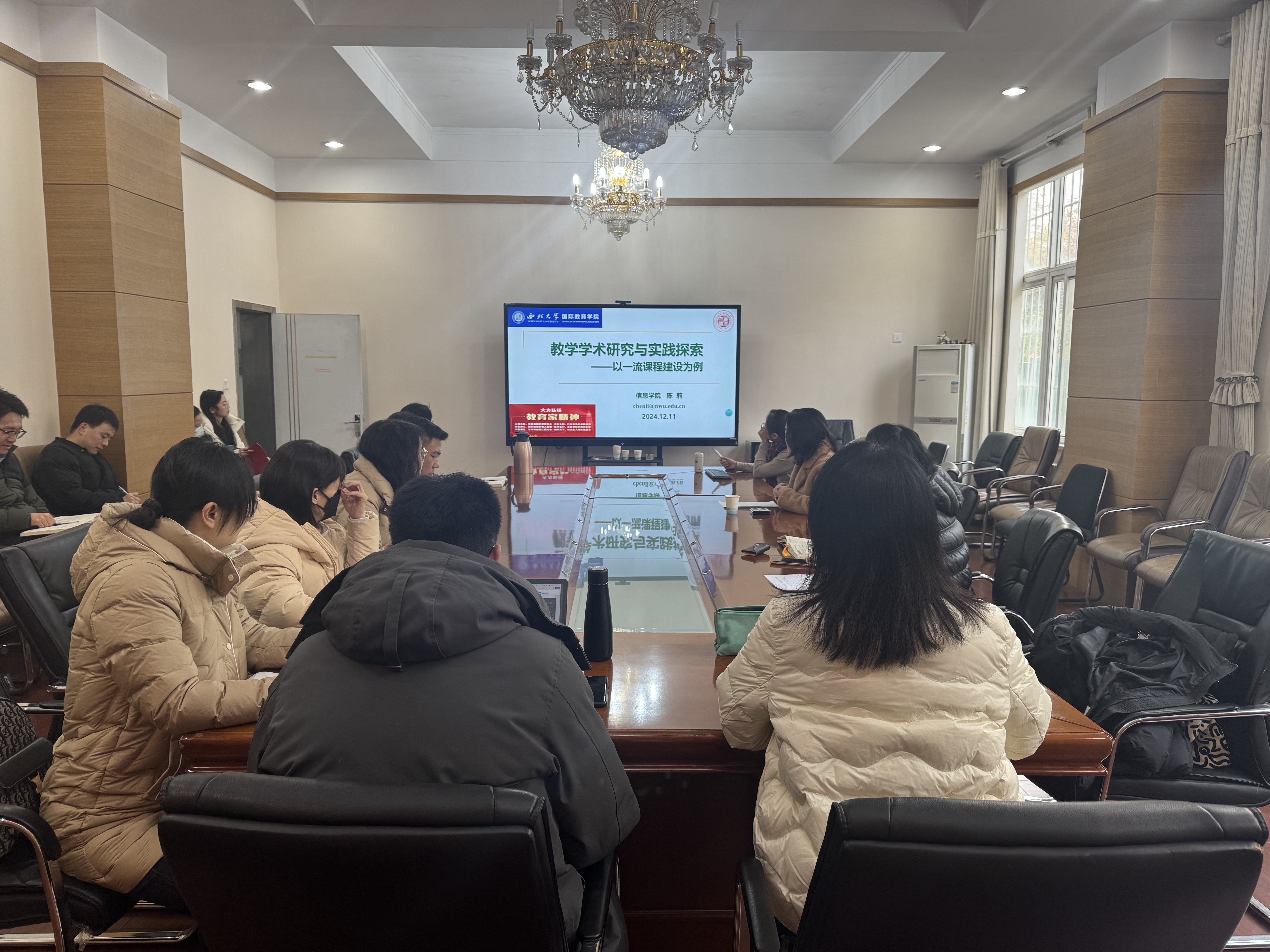 2024年12月11日下午,西北大学二级教授、博士生导师,陕西省高等学校教学名师、陕西省课程思政教学名师陈莉教授做客我院,做了题为“教学学术研究与实践探索——以一流课程建设为例”的精彩讲座。我院教师和行政人员参与学习和交流。
