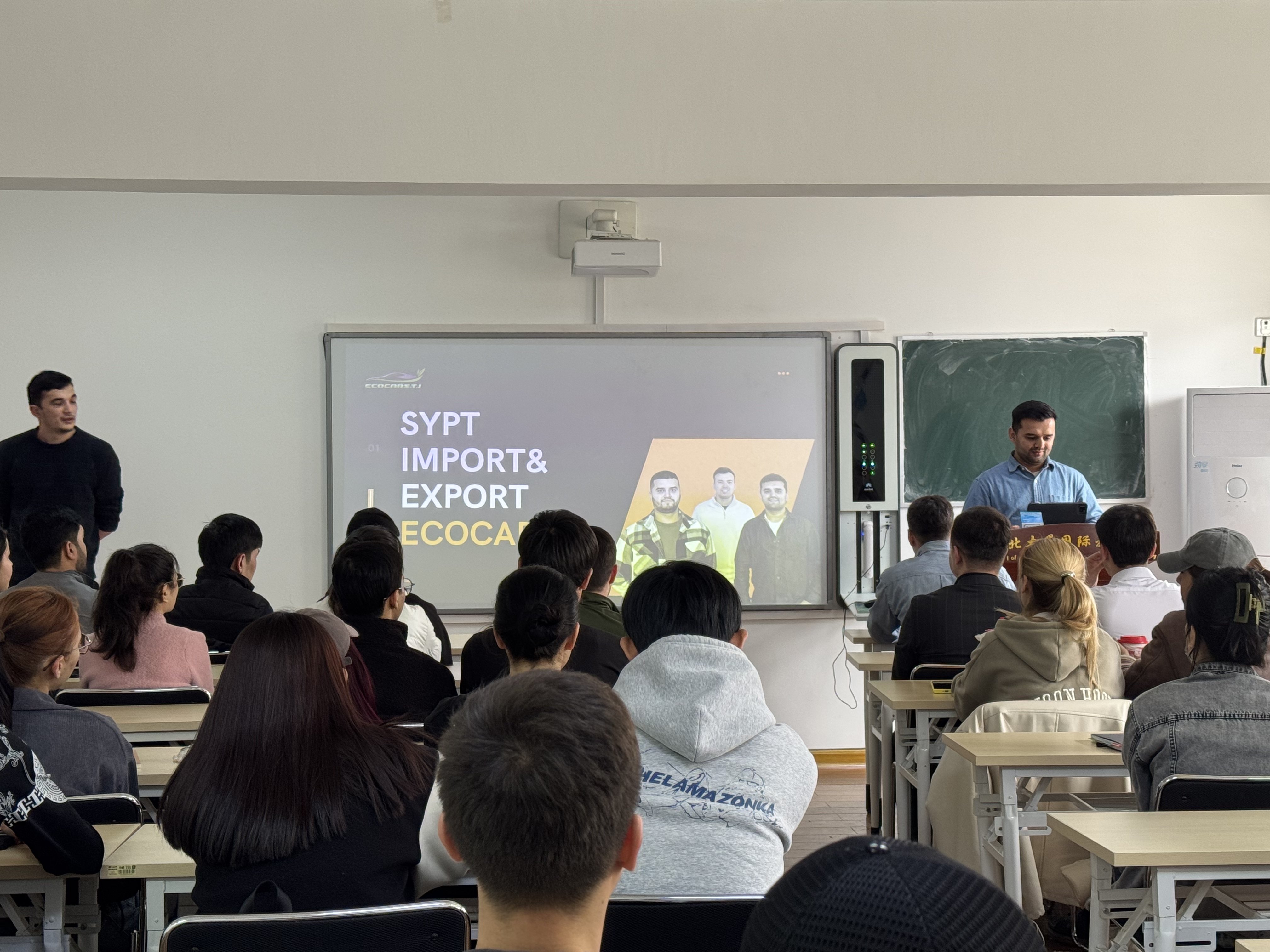 2025年4月9日下午,我院举办了本学期“企业家进课堂”讲座,邀请西安赛普范飞进出口有限公司三位联合创始人FIRUZ PIRUMSHOEV, FARRUKH PIRUMSHOEV和SHARIPOV MANUCHEHR为国际学生作了“从留学生到企业家:我们的中国创业故事”的主题讲座。国际经济与贸易专业的本科国际学生和对国际贸易感兴趣的其他学生40余人参加了本次讲座。