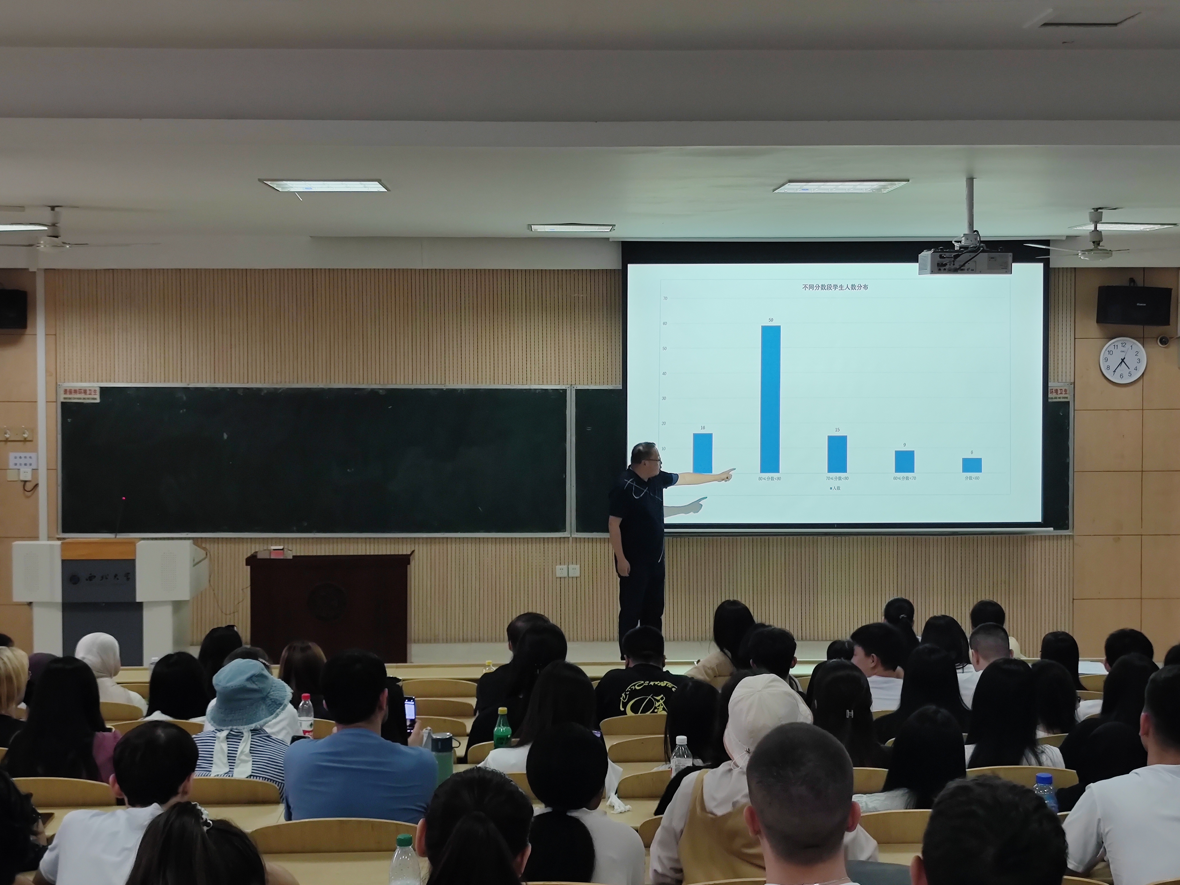 杨喆对学生自评答辩结果进行了分析,包括答辩分数的分布,学生考勤情况,晚归未归情况。答辩成绩低的同学考勤相对较差,他希望同学们端正学习态度,在新的学年努力刻苦学习。最后,他通过真实案例,提醒全体学生交通安全注意事项。