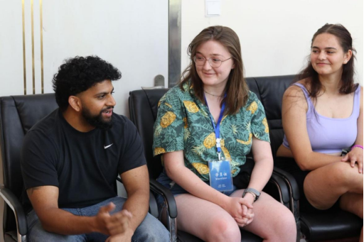 在美方师生自我介绍环节,两位带队老师分享了对此次访学的期待,17 名学生依次用英文介绍自己的专业、兴趣爱好,言语间流露出对中国文化的向往与好奇,现场气氛轻松活跃。
