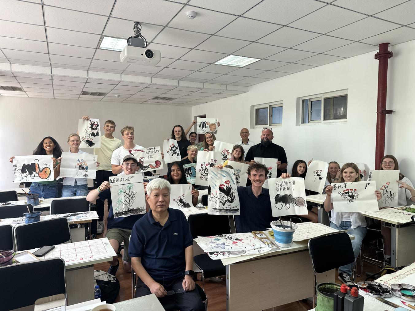 在本次为期10天的交流学习中,学院依据美国学生汉语水平定制汉语课程,有效提升其语言沟通能力。同时,丰富的传统文化体验课,例如编中国结、绘国画、唱中文歌等,也让学生们近距离感受到了中国文化的魅力。在校园文化探索环节,除了参观校园和西北大学博物馆,还前往西北大学长安校区外国语学院参观斯诺研究中心,深入了解埃德加・斯诺与中国的渊源,感受跨越国界的友谊力量。参观结束后,他们还与中国学生展开热烈交流,彼此分享学习与生活的点滴趣事。
