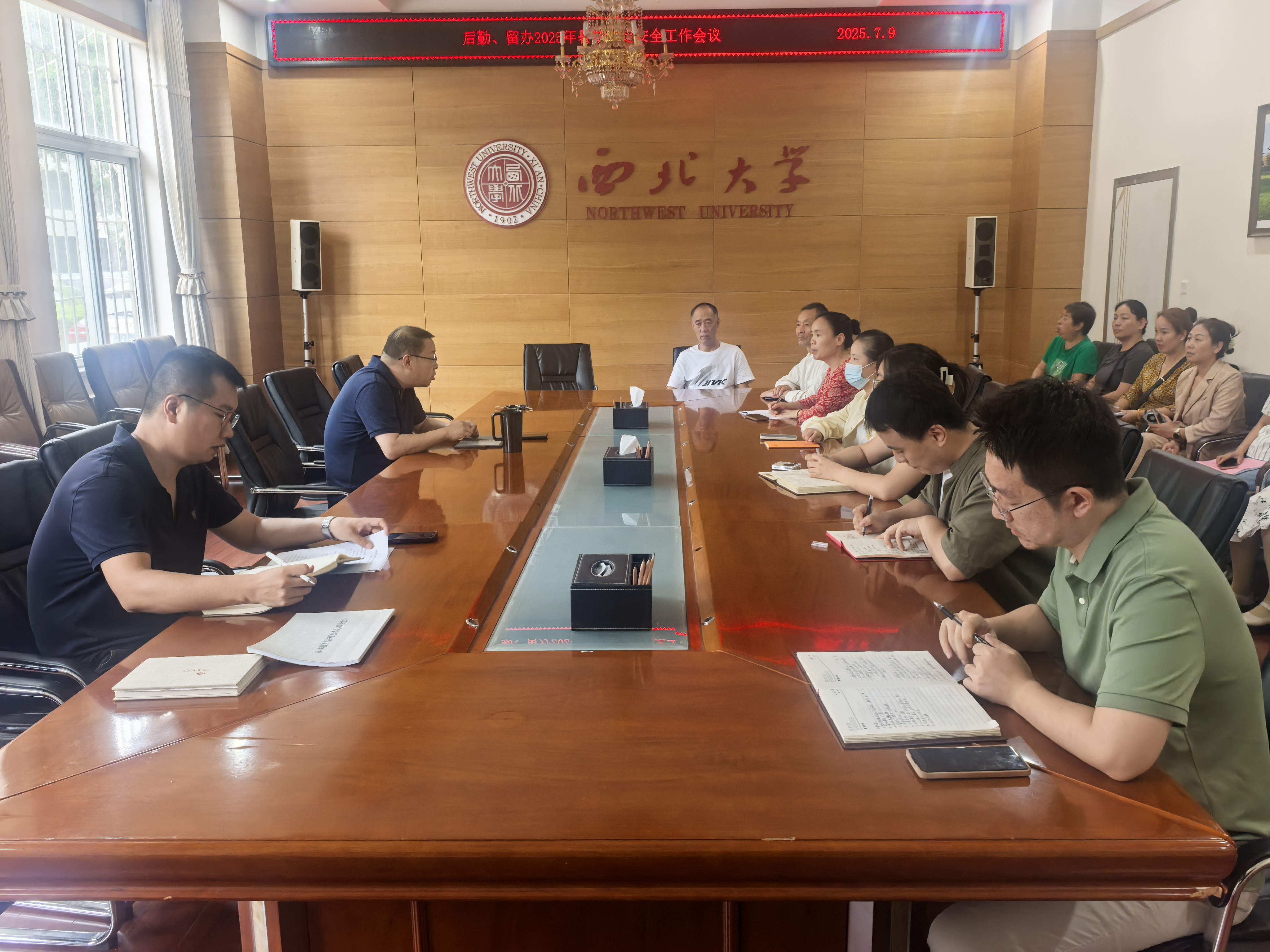 在随后的暑期稳定安全工作会议上,国际学生后勤服务中心、国际学生管理办公室负责人安排了暑期重点工作,学院分管领导强调:一要严守稳定安全工作底线,全面排查安全隐患,加强安全意识教育,提高师生安全防范和自我保护意识,坚决杜绝安全事故发生;二是两个部门要加强值班值守,严格门禁防范,遇突发事件第一时间上报,全力营造稳定安全的暑期学习生活环境;三是做好暑期留校师生尤其是短期班师生的学习生活保障工作,及时更新留校和离校国际学生信息,并为新学期工作做好充分准备。