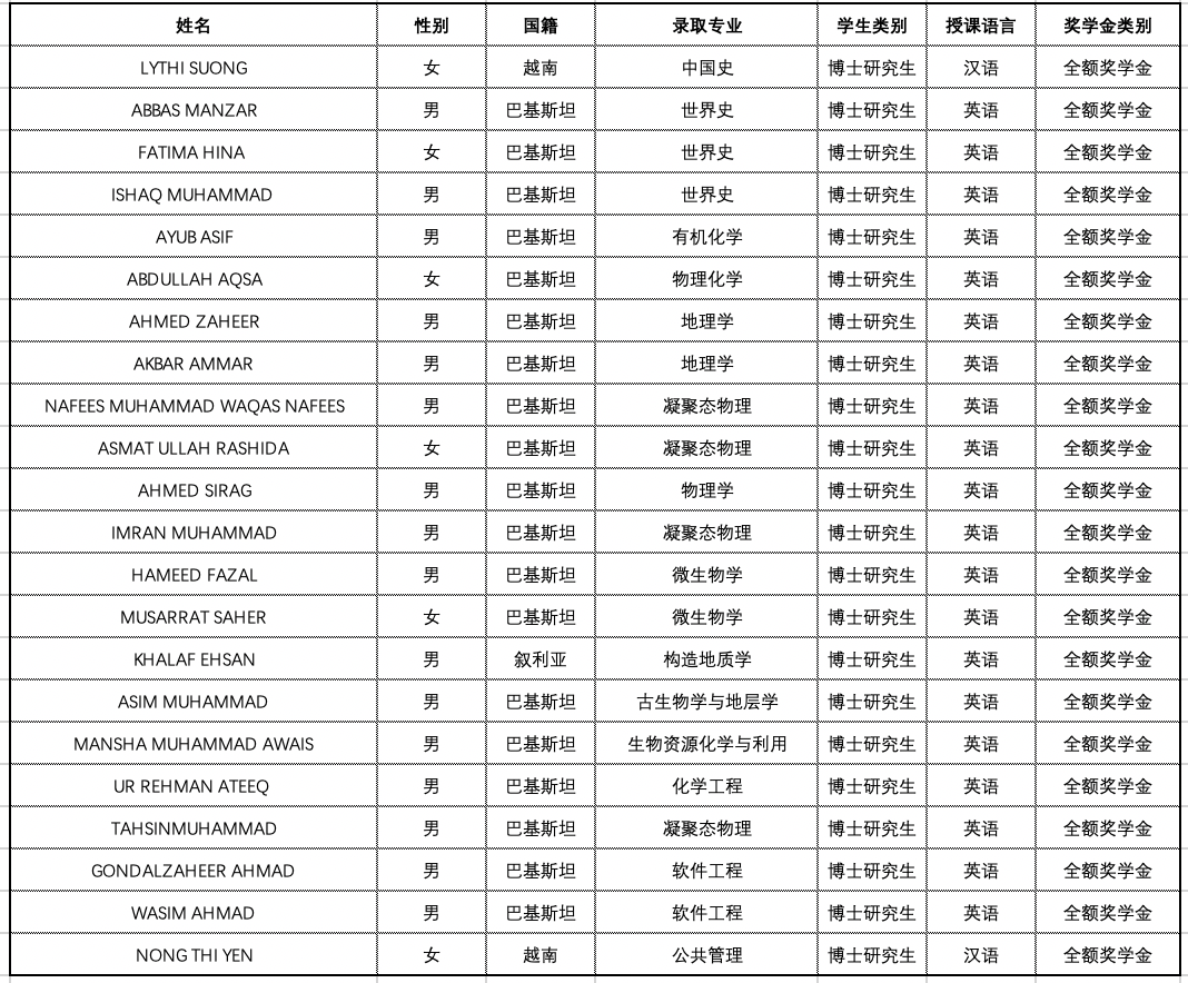 2021-2022学年度西北大学丝绸之路外国留学生奖学金拟录取名单公示