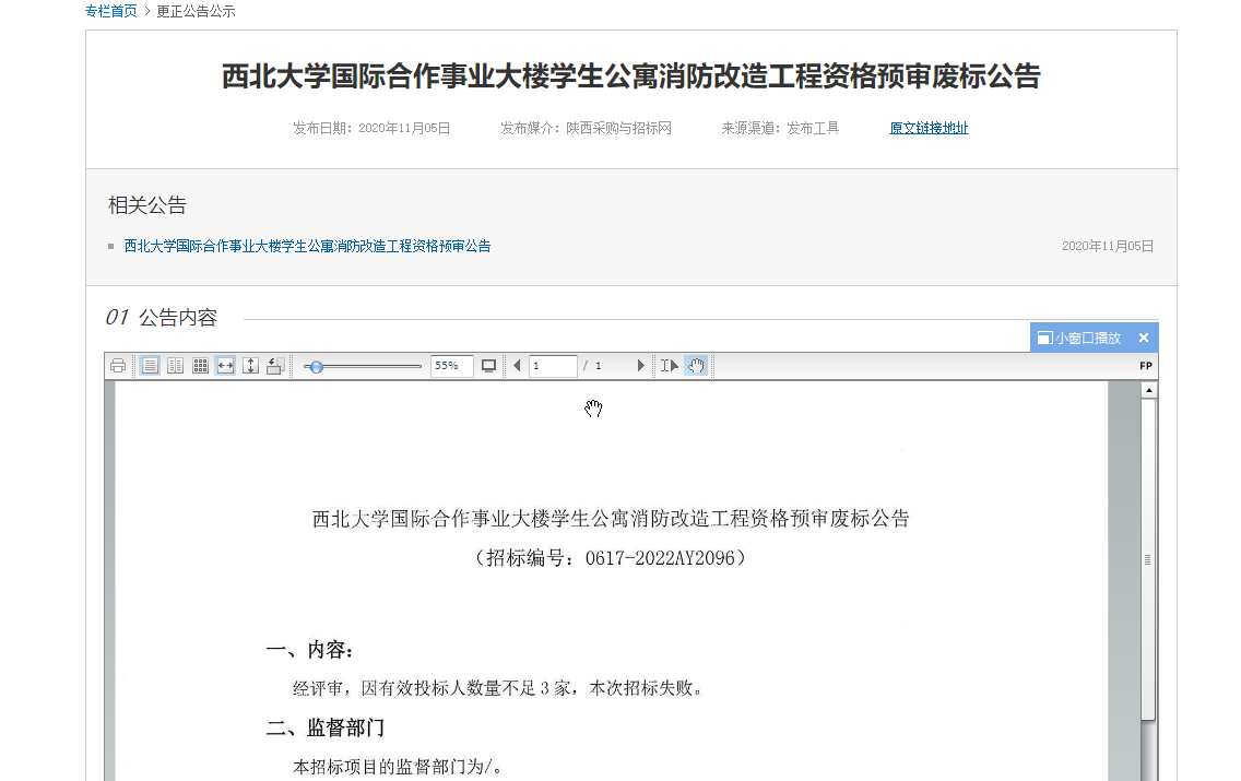 西北大学国际合作事业大楼学生公寓消防改造工程资格预审废标公告