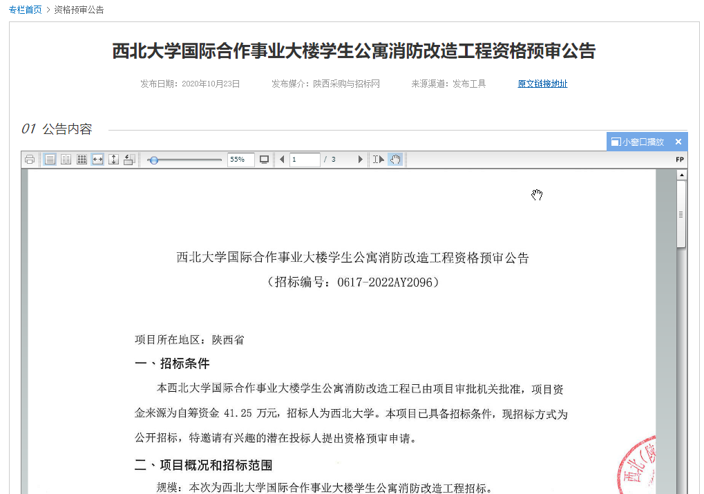 西北大学国际合作事业大楼学生公寓消防改造工程资格预审公告