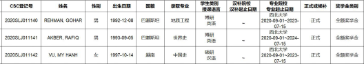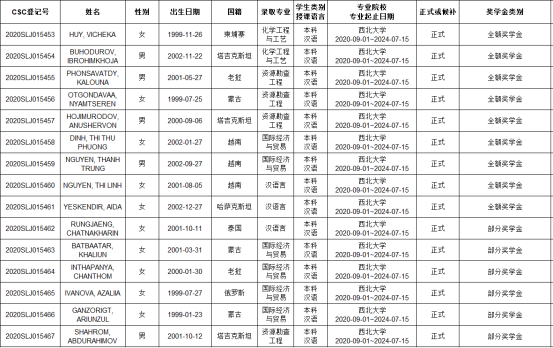 根据国家留学基金委中国政府奖学金招生相关文件精神,经学生申请、我校初审、留基委审核,我校2020/2021年度中国政府奖学金获得者名单如下: